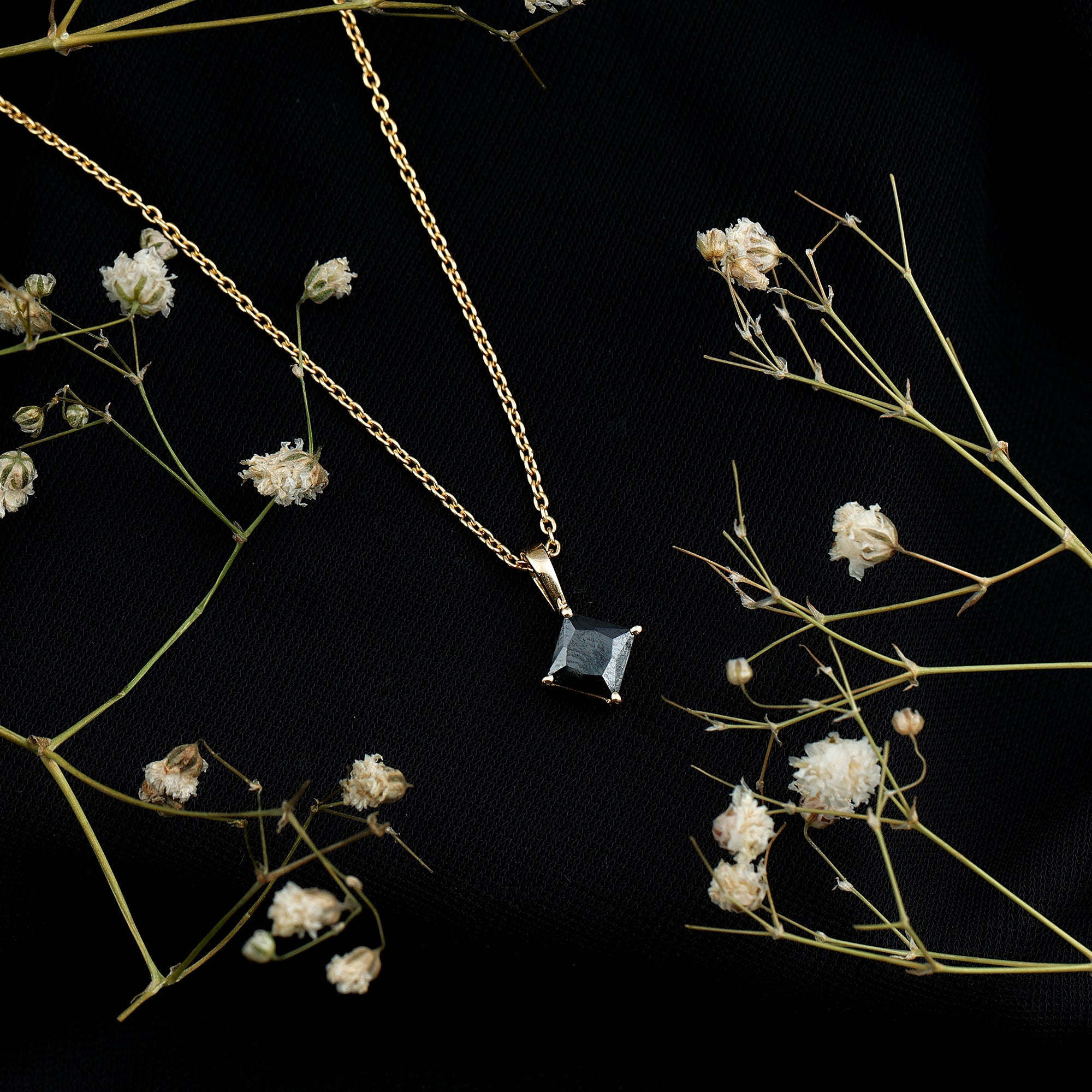 Simple enough for daily wear, yet special enough to be noticed, this Black Spinel Necklace is your new go-to. Handcrafted in 14k yellow gold plated silver, this piece features a striking 5.5 MM princess cut black spinel, held securely in prong setting. The Solitaire Pendant is attached to a smooth, polished bail that flows naturally into a simple yet durable chain, offering a comfortable fit that sits beautifully against the skin. Lightweight and easy to wear, this Princess Cut Necklace is made for daily elegance while still offering that extra bit of charm for special occasions. The AAA quality Black Spinel not only makes a bold fashion statement, but it is also an August birthstone, known to symbolize strength and protection. That makes it an especially meaningful gift for birthdays, personal milestones, or simply a thoughtful surprise for yourself. Comes with a signature jewelry box, this August Birthstone Necklace is ready to celebrate life’s everyday moments or the big ones.