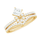 Princess Cut Certified Moissanite Flower Wedding Ring Set