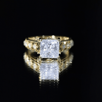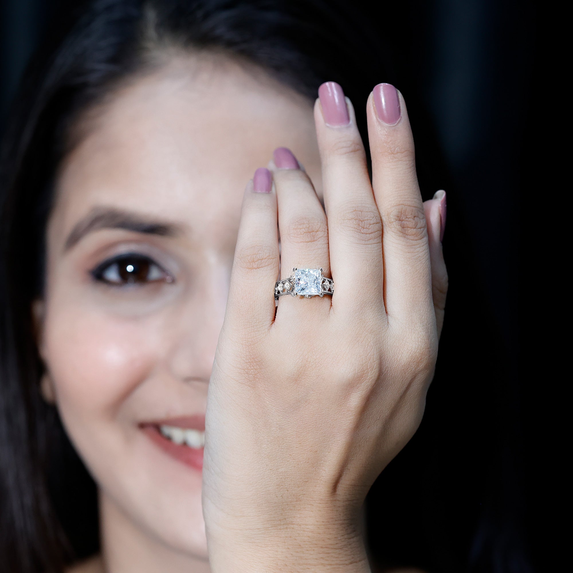 Ensure your proposal is unforgettable by presenting this Art Deco Moissanite Ring. Featuring a 6.5 MM Princess Cut Moissanite in a 4 Prong Setting, with Round Moissanite accents on both sides of the shank, this Solitaire Ring symbolizes your love and commitment. Slip this Moissanite Solitaire Ring on her finger to seal your love for each other. The ring has a total weight of 2 Carats and boasts a high-quality of D Color VS1 Clarity. Our gemstones are certified and rigorously checked for quality assurance.