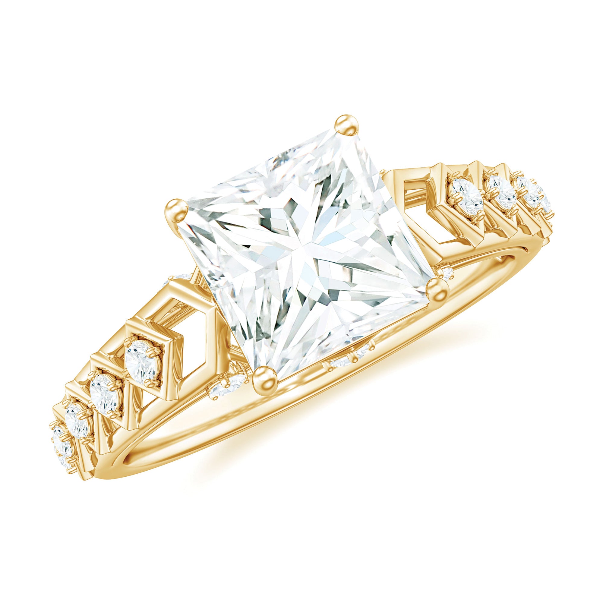 Princess Cut Certified Moissanite Gold Solitaire Engagement Ring