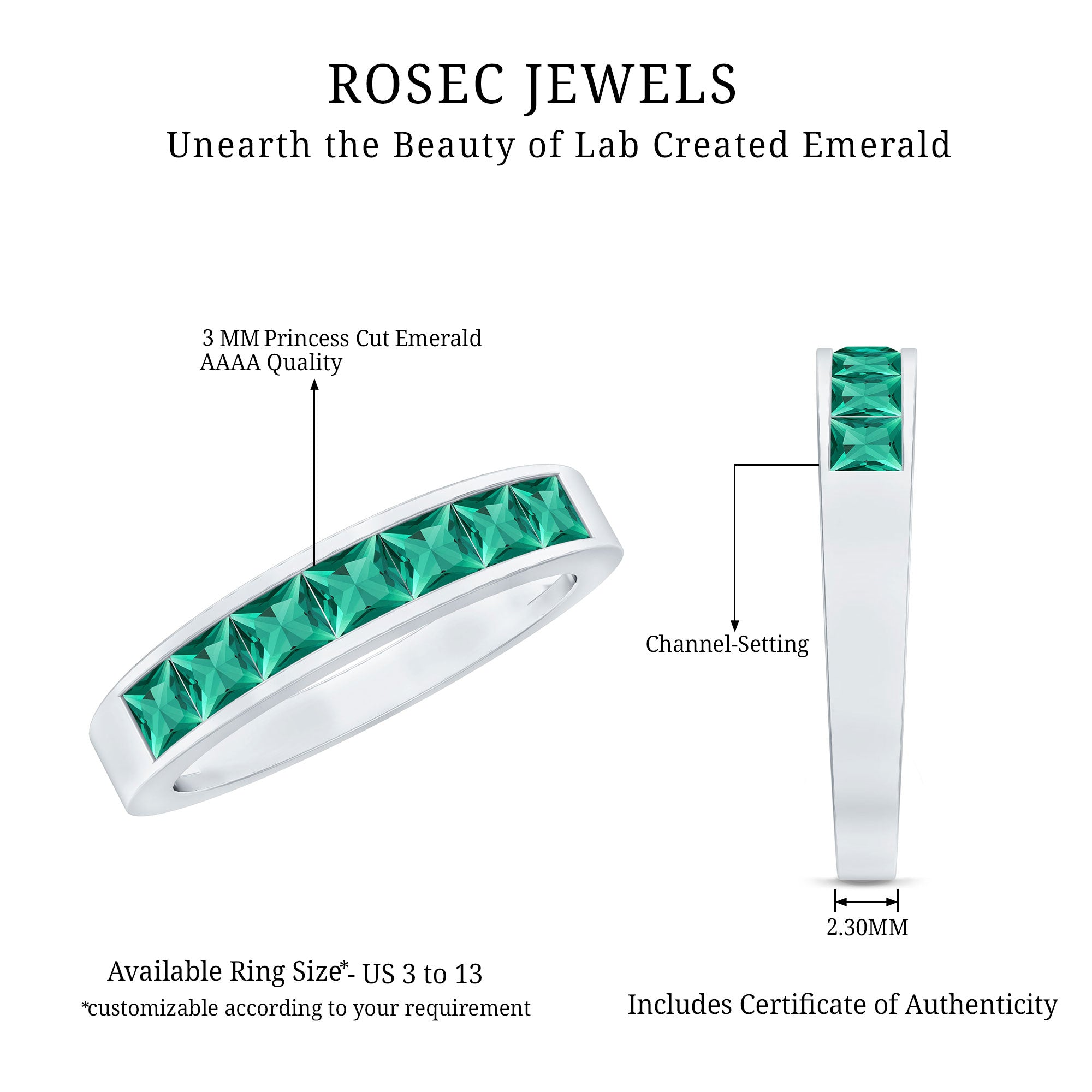 Princess Cut Created Emerald Half Eternity Band Ring in Channel Setting