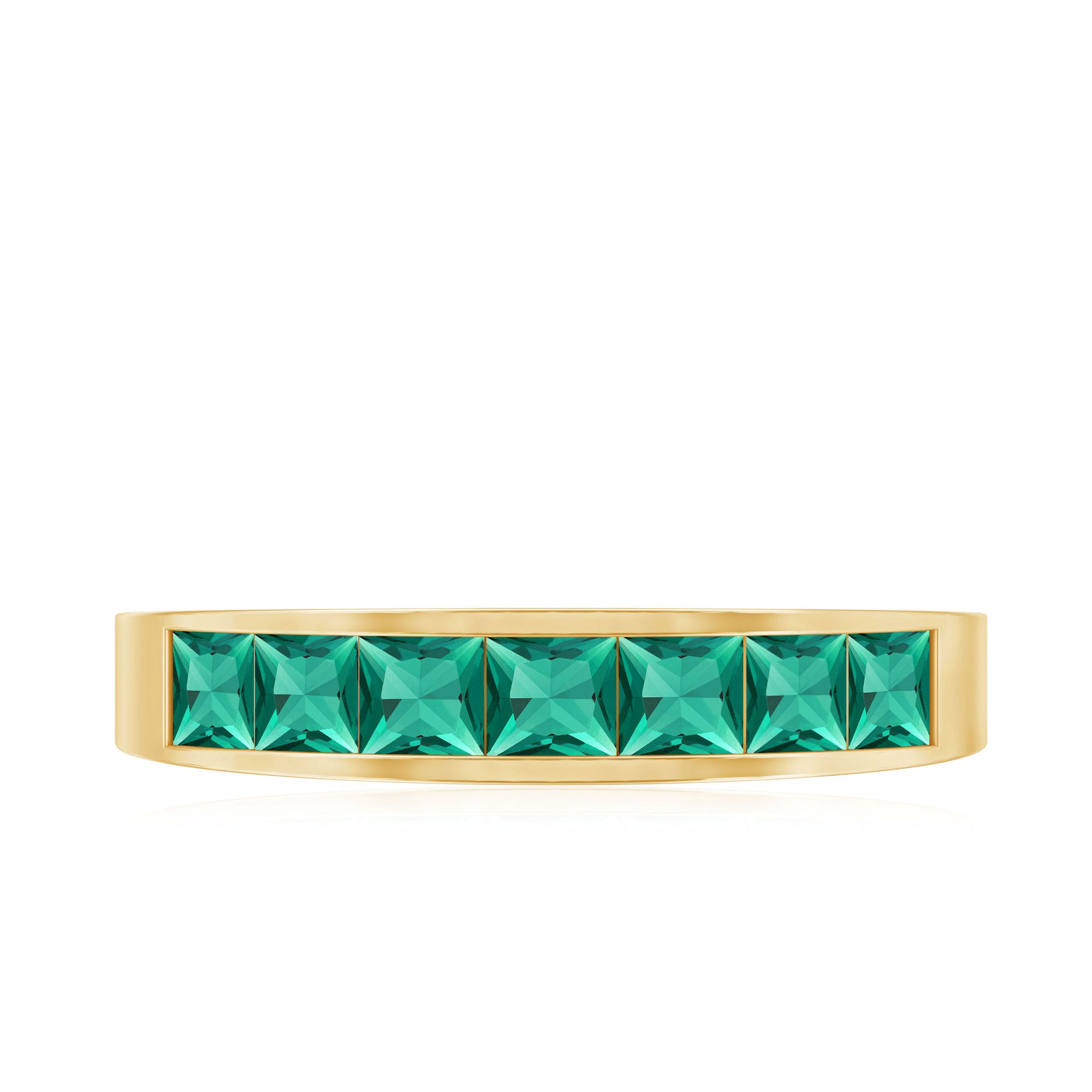 Princess Cut Created Emerald Half Eternity Band Ring in Channel Setting