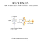 - The Cluster Earring showcases a round diamond on top, complemented by princess cut diamonds held securely in place with prong setting.