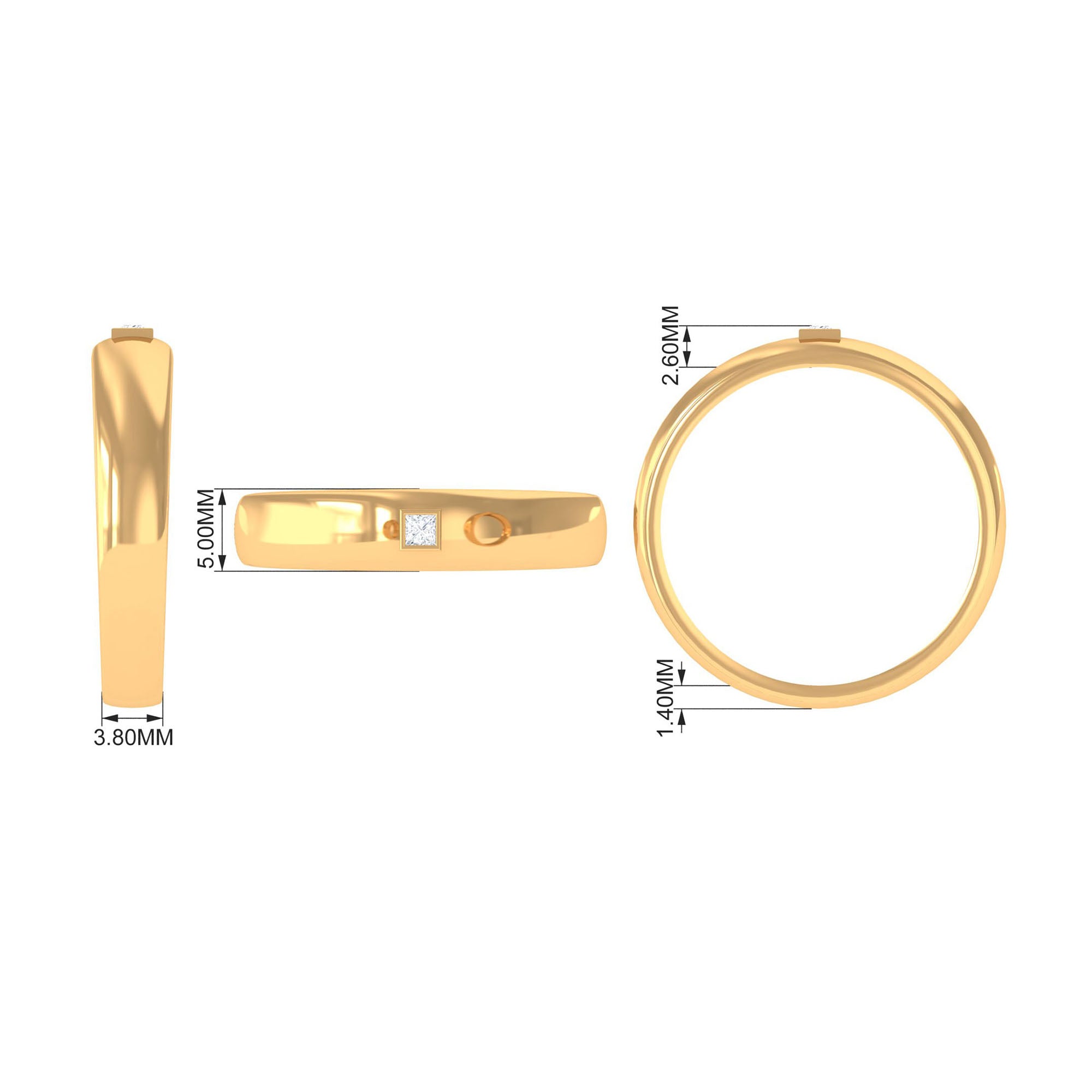 A unique and classy style, this diamond solitaire band ring will make you fall in love for sure. The ring features a 2 MM princess cut diamond center stone, making a sparkling effect to the ring. The bezel setting ensures the safety and durability of the stone, adding quality standards to this piece. This stunning band ring is a symbol of your commitment to your partner.