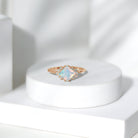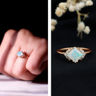 Flaunt your gorgeous look with the engagement ring that breaks all the rules in the best way. This Princess Cut Engagement Ring takes center stage with a stunning diagonal twist. Featuring a 5 mm Princess Cut Ethiopian Opal set in Prong Setting as a center stone, radiates with a kaleidoscope of fiery colors, blues, greens, and flashes of pink that shift with every glance. Flanked by shimmering Diamond stones on either side, this Opal Diamond Engagement Ring captures the perfect mix of edgy elegance and timeless romance. The unexpected angle of the AAA Quality Opal adds modern flair, while the sparkling HI-SI Diamond stones increase its brilliance. Whether you are celebrating a love that is one-of-a-kind or treating yourself to something truly special, this Real Opal Engagement Ring delivers sparkle with a side of personality. Packaged in a signature jewelry box and available in a variety of sizes, it is ready for the big moment or your next big statement. For the bold hearts, this Opalescent Ring is a fresh take on forever.
