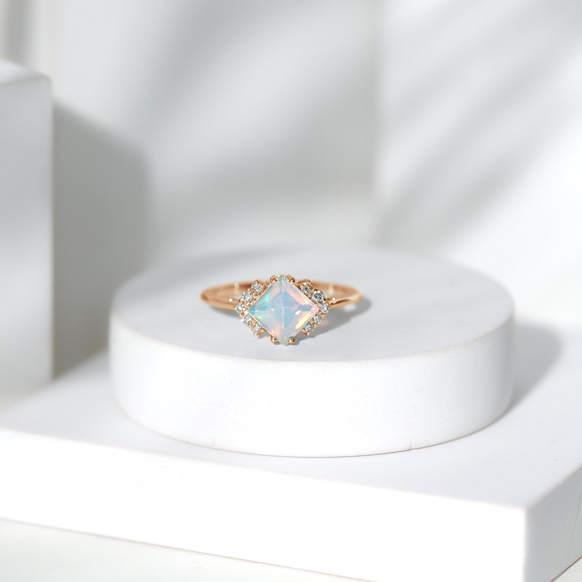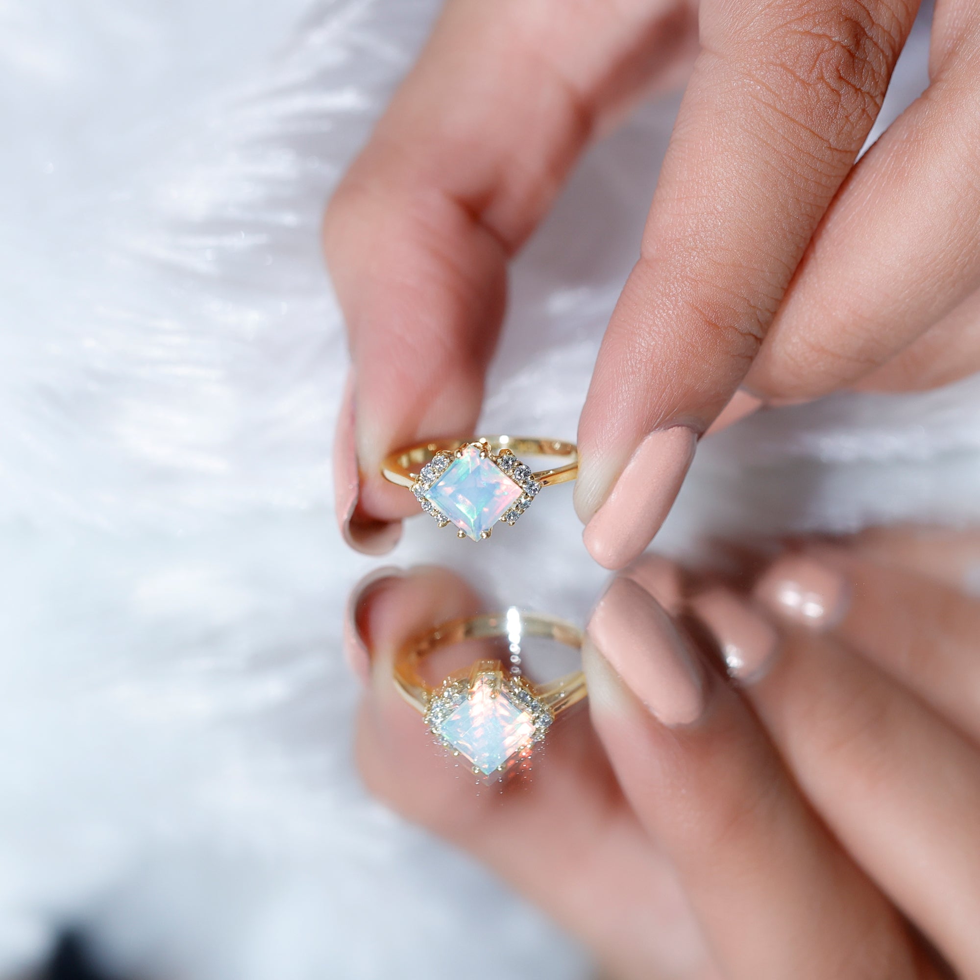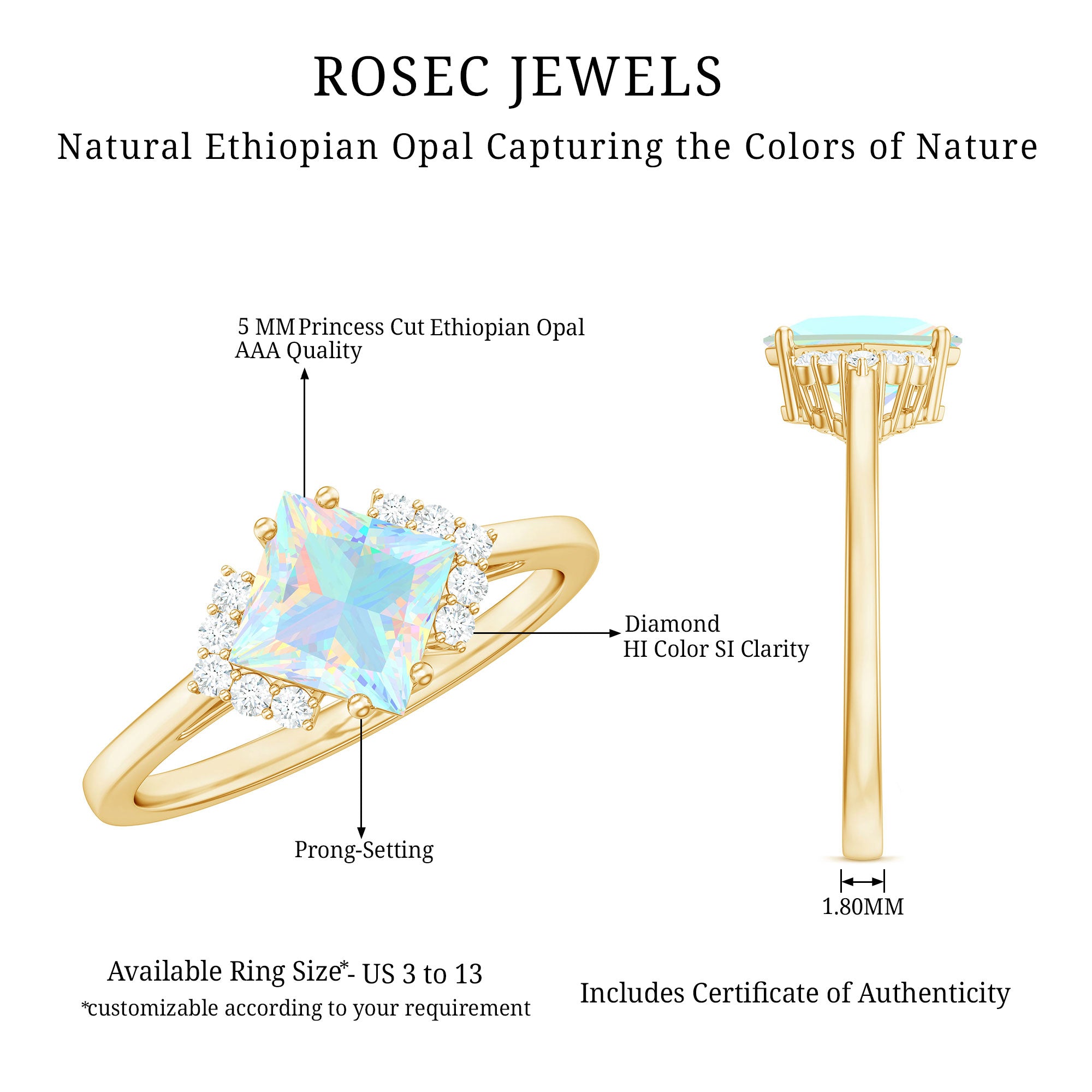 Natural Ethiopian Opal Princess Cut Engagement Ring with Diamond