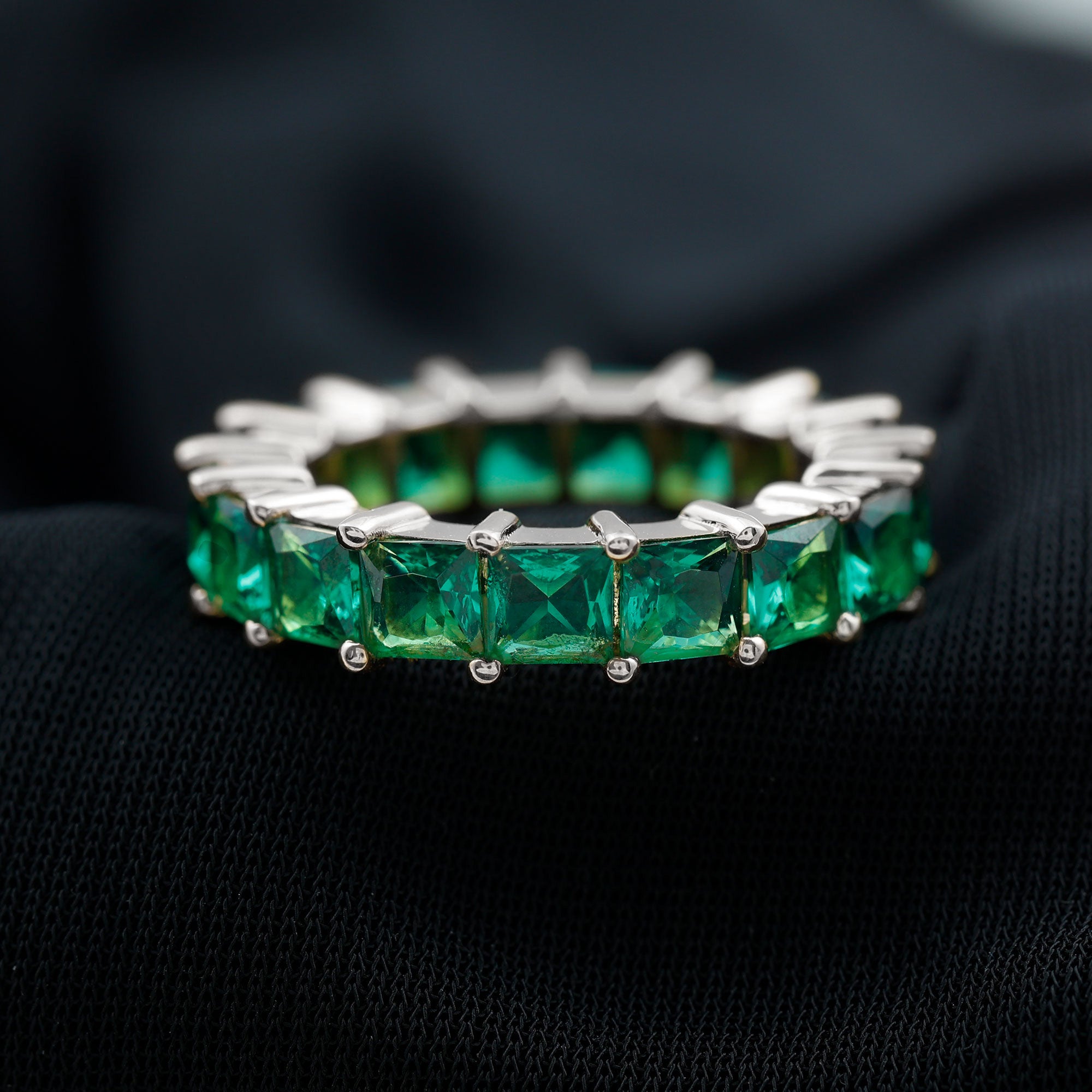Princess Cut Lab Created Emerald Full Eternity Band