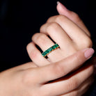 This Eternity Band is meticulously crafted with a modern design, rendering it a timeless choice for both casual and formal events. The Band Ring features princess-cut Lab Created emeralds that sparkle in a shared prong setting, creating an elegant and sophisticated appearance. Enhance your daily outfit with this exquisite Lab Created Emerald Ring. This Full Eternity Ring is understated yet showcases the vibrant green lab created emerald, ensuring she feels cherished. This Layering Ring can be worn solo for a minimalist aesthetic or stacked with other sleek rings for a more refined look. This Stackable Eternity Ring will be shipped to you in high-quality packaging, accompanied by a certificate of gemstone authenticity.