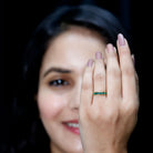 Captivate hearts on your special day with the stunning Half Eternity Wedding Band, a perfect blend of elegance, meaning, and brilliance. The design features a beautiful center row of 3 mm Princess Cut Lab Created Emerald stones, set diagonally in Prong Setting to create a unique and eye-catching pattern. On either side of the Lab Emerald row, Marquise Shape Moissanite stones are placed horizontally, adding extra sparkle and a touch of sophistication. The combination of Lab Grown Emerald and Moissanite creates a stunning contrast of color and light, making the Half Eternity Band stand out with graceful charm. Available in various ring sizes from 3 to 13, this Lab Grown Emerald Ring is designed to fit comfortably and complement your engagement ring perfectly or stand beautifully on its own. This Princess Cut Emerald Ring comes elegantly packaged in a jewelry box, ready to be gifted as a treasured keepsake. Whether exchanged on your wedding day or given as a symbol of everlasting love, this Emerald Wedding Band will surely be the perfect choice for her, a radiant reminder of your shared journey and the promise of forever.
