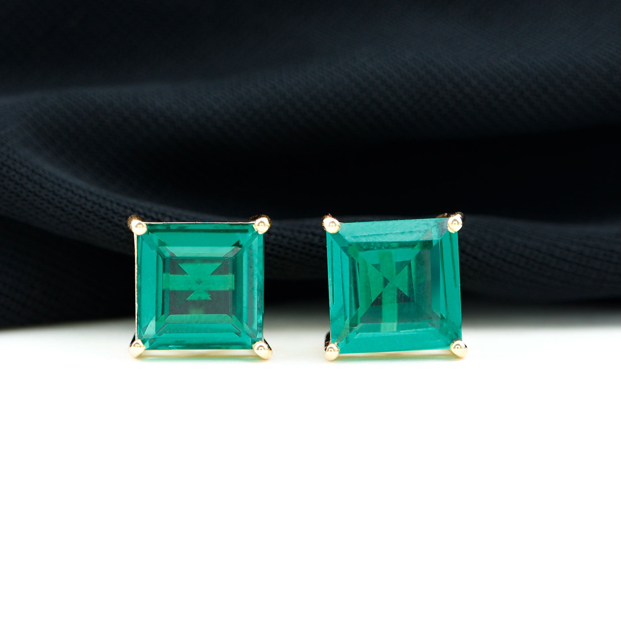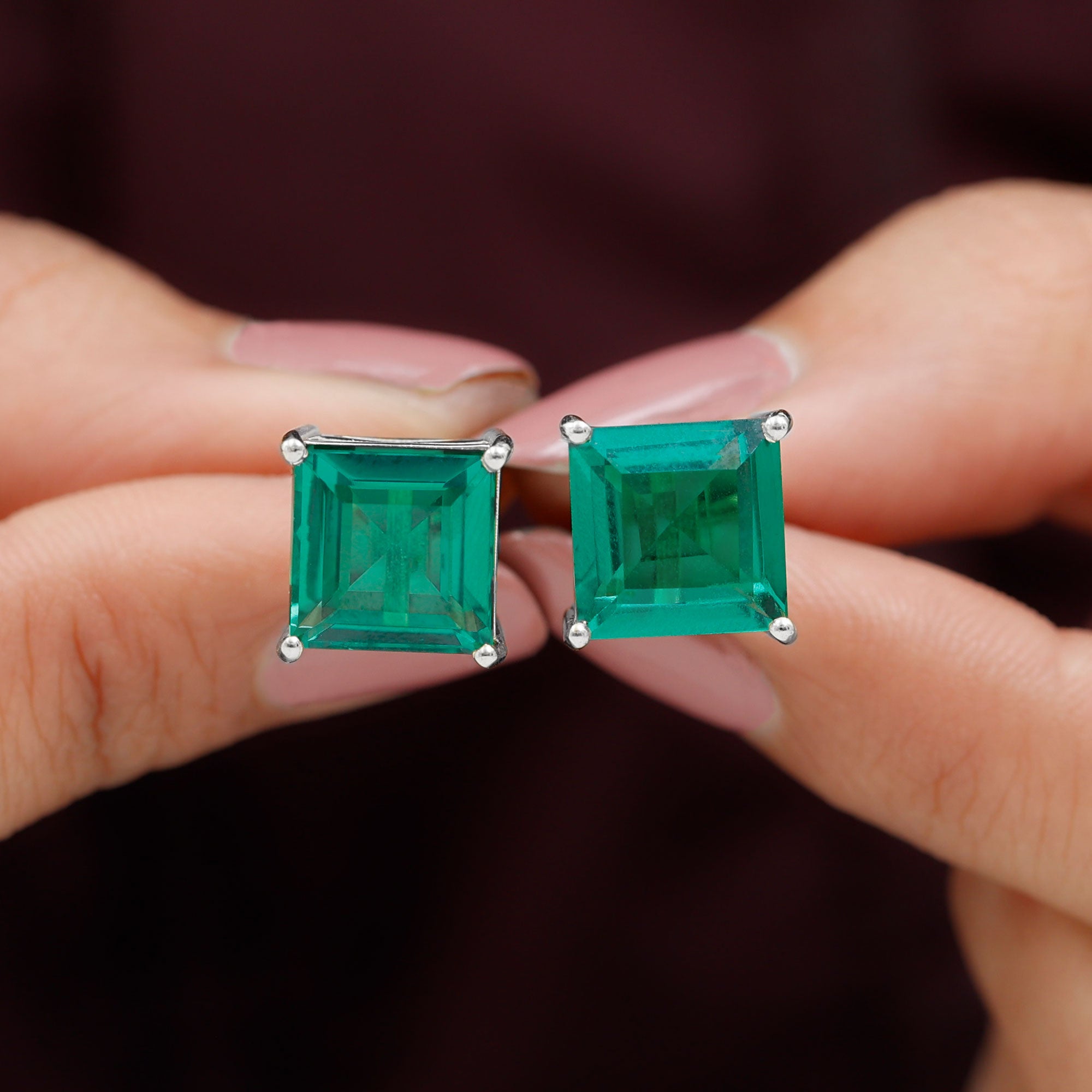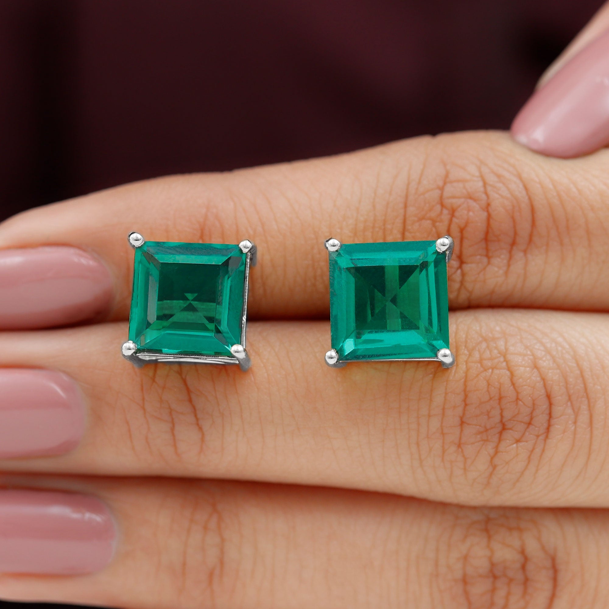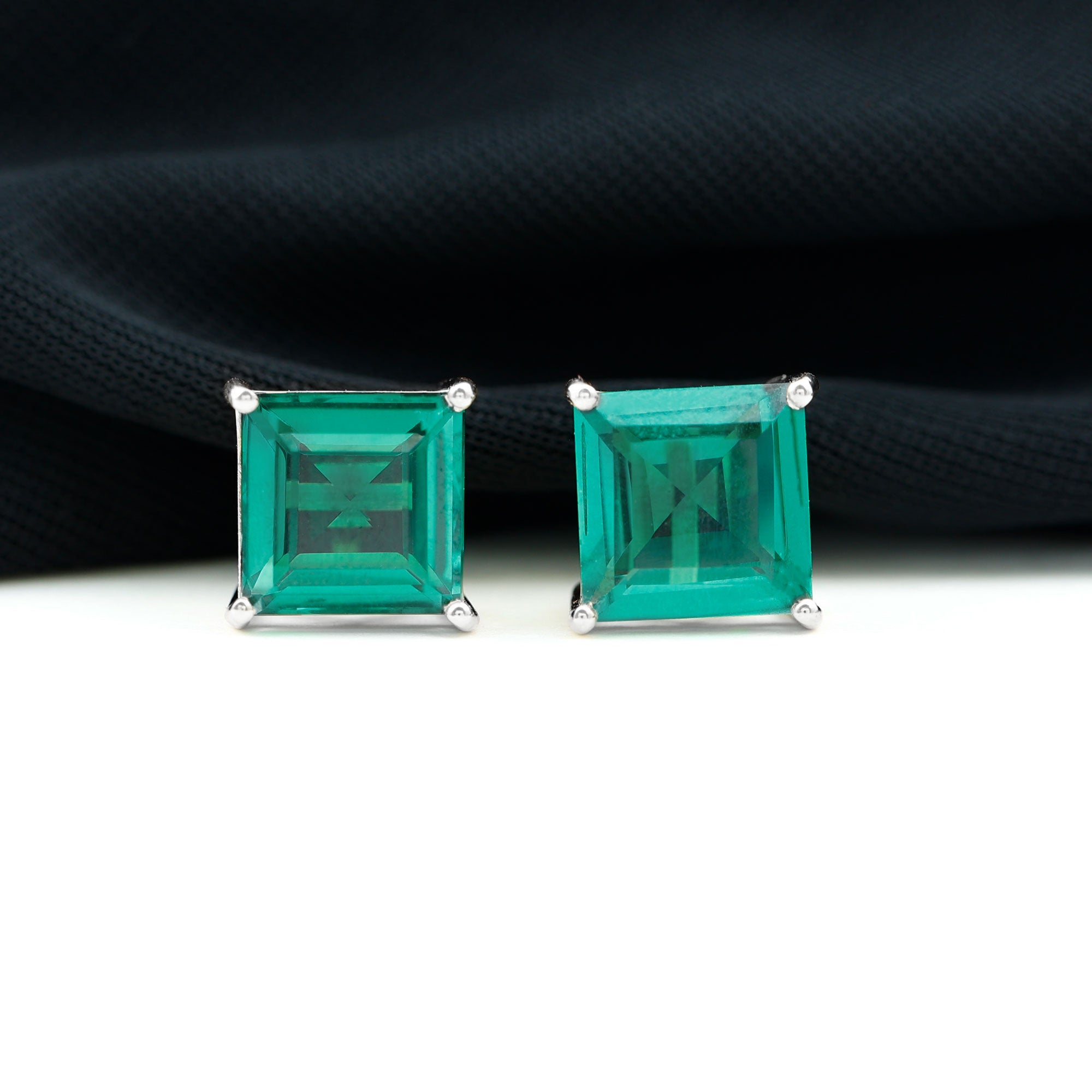 Princess Cut Lab Grown Emerald Solitaire Stud Earrings
