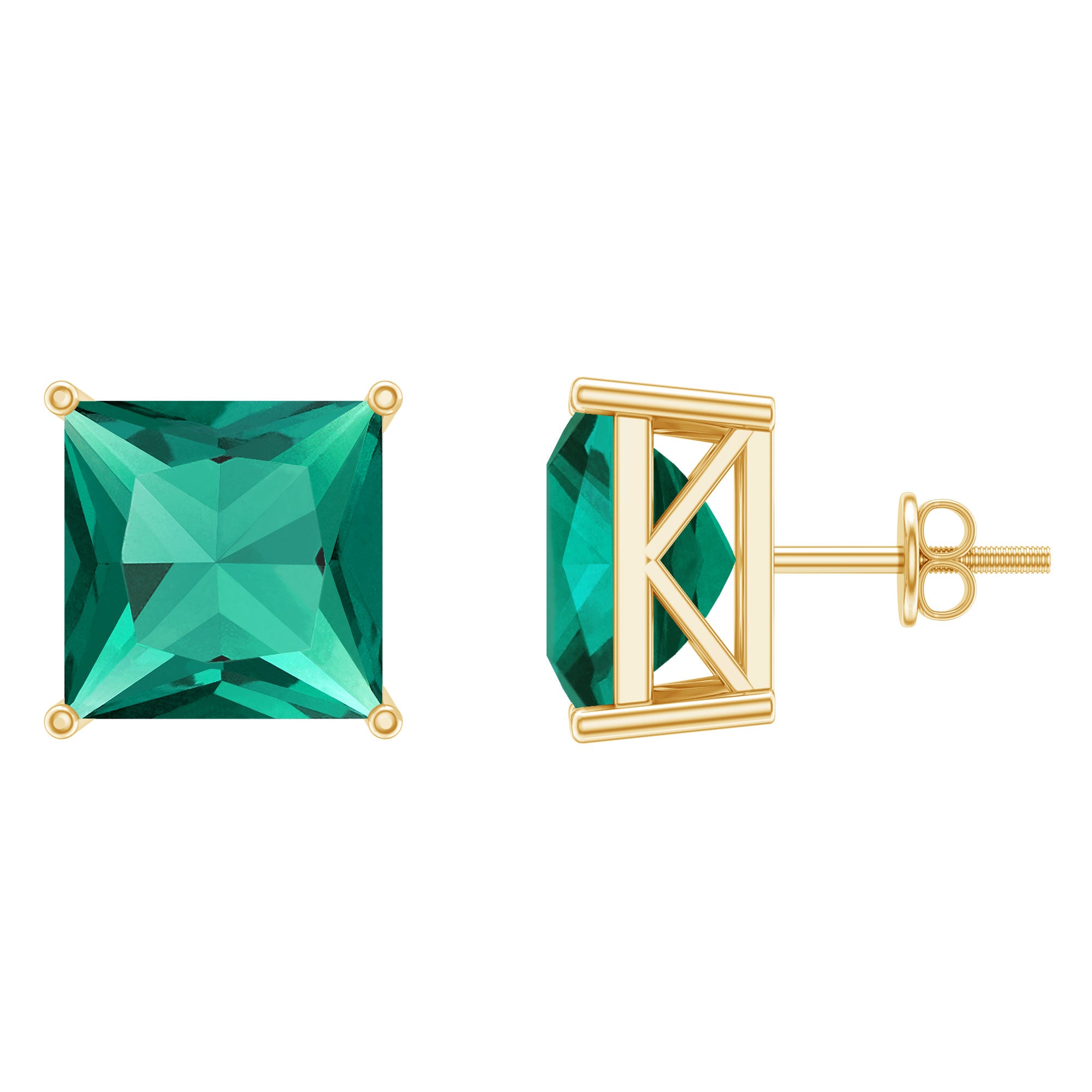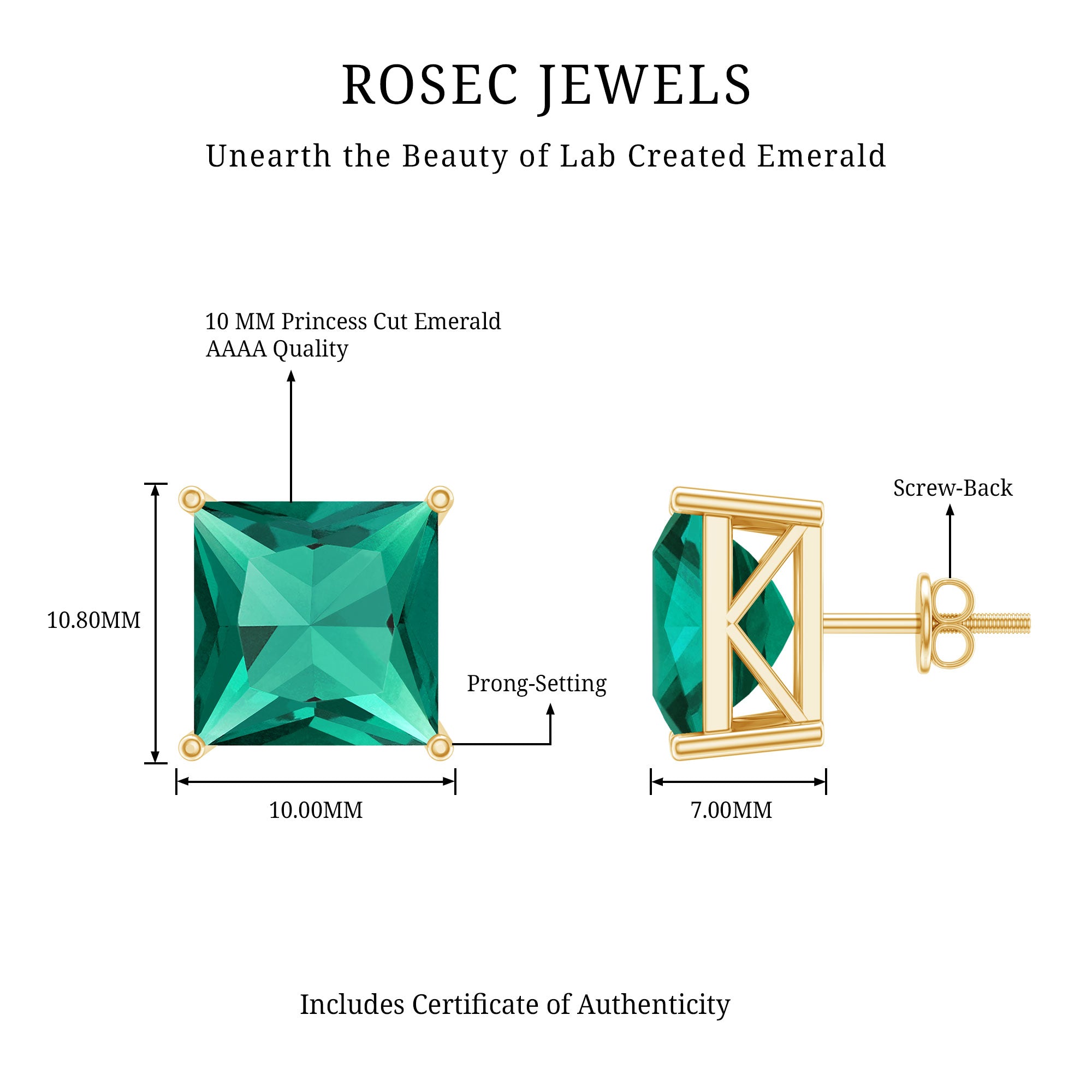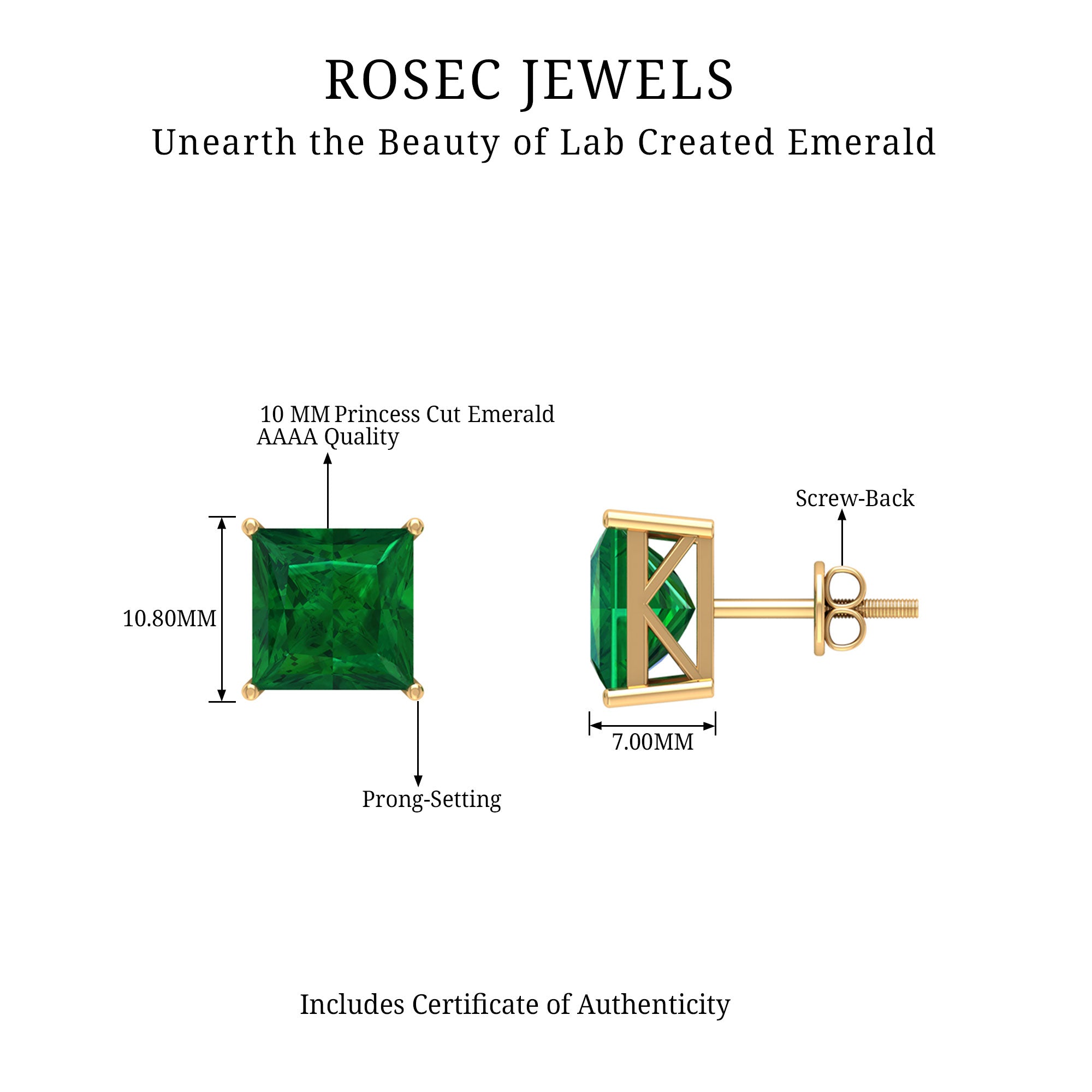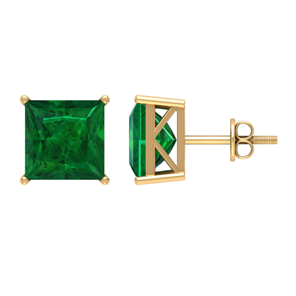 Princess Cut Lab Grown Emerald Solitaire Stud Earrings