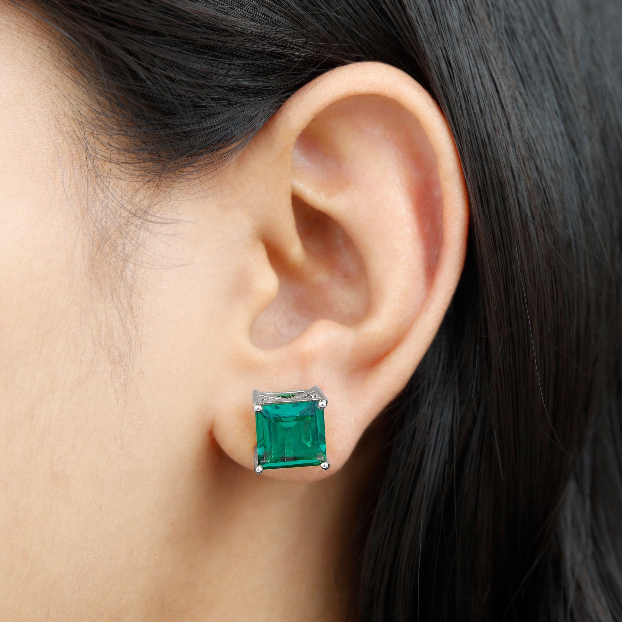 Show your Gratitude in a special and different style by gifting this Solitaire Stud Earrings. This Stud earrings feature with Princess Cut Created Emerald set as Solitaire in a Four Prong Setting.