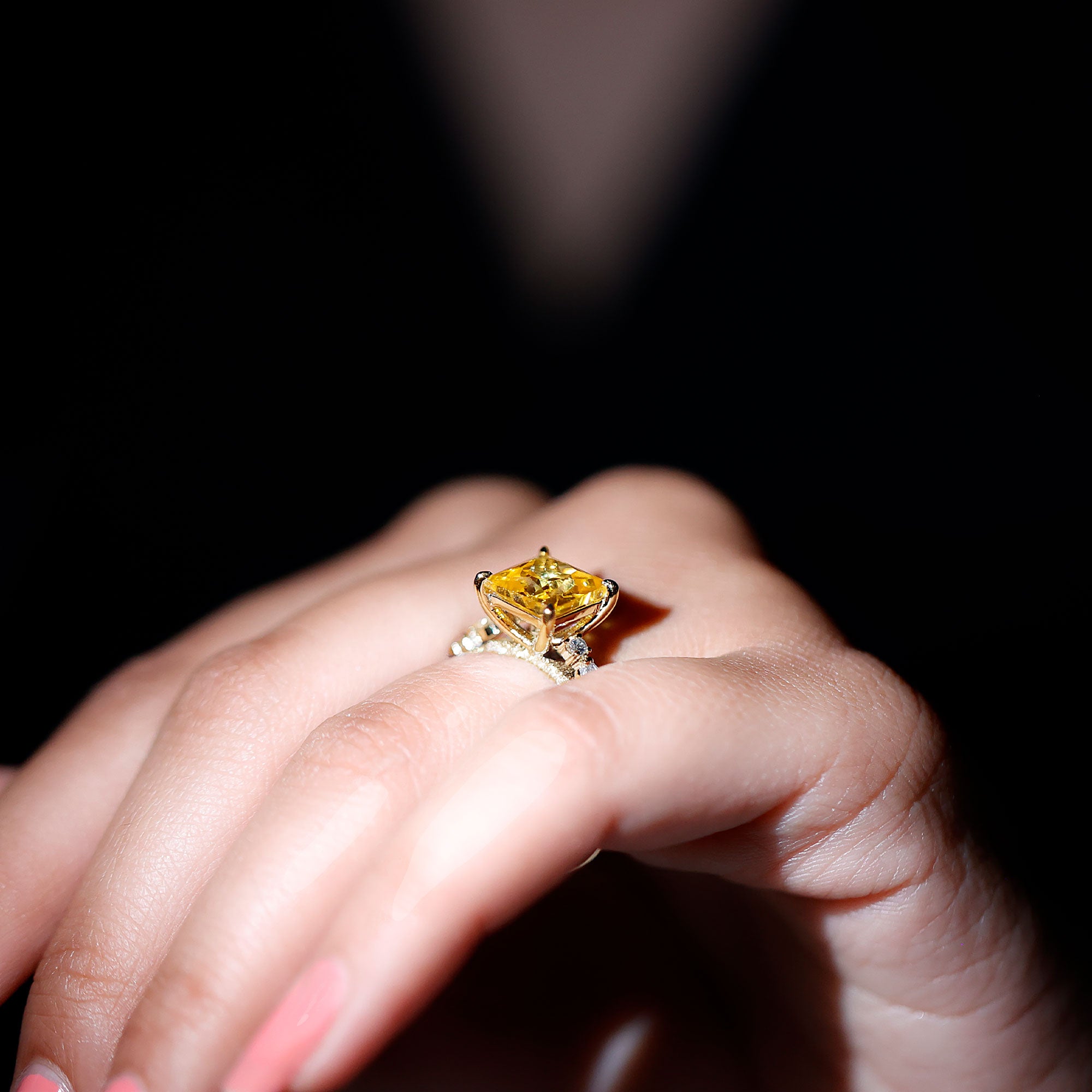 Princess Cut Lab Grown Yellow Sapphire Solitaire Engagement Ring