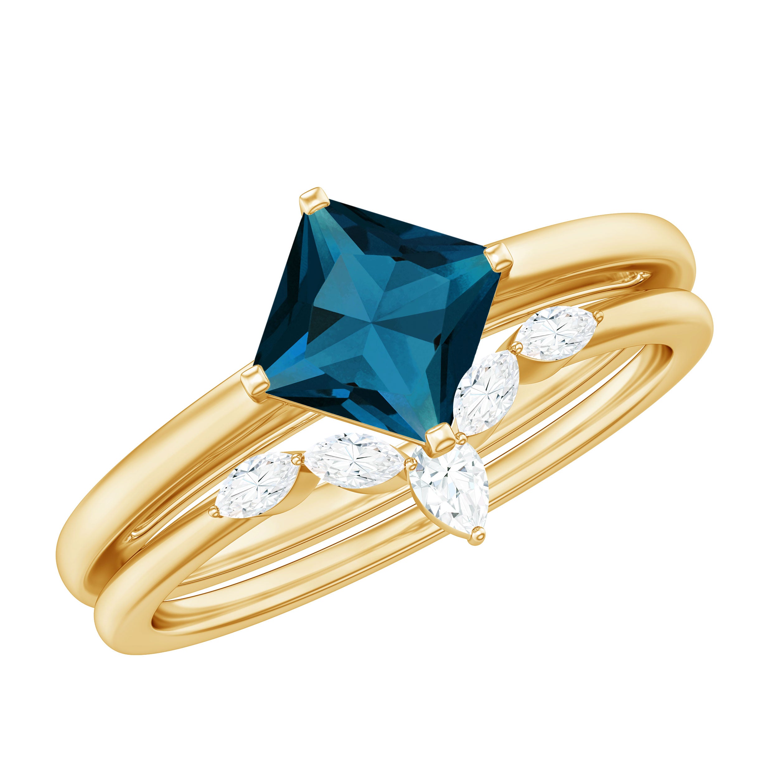 Princess Cut London Blue Topaz Designer Wedding Ring Set for Women