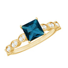 6mm Princess Cut London Blue Topaz Solitaire Ring with Diamond