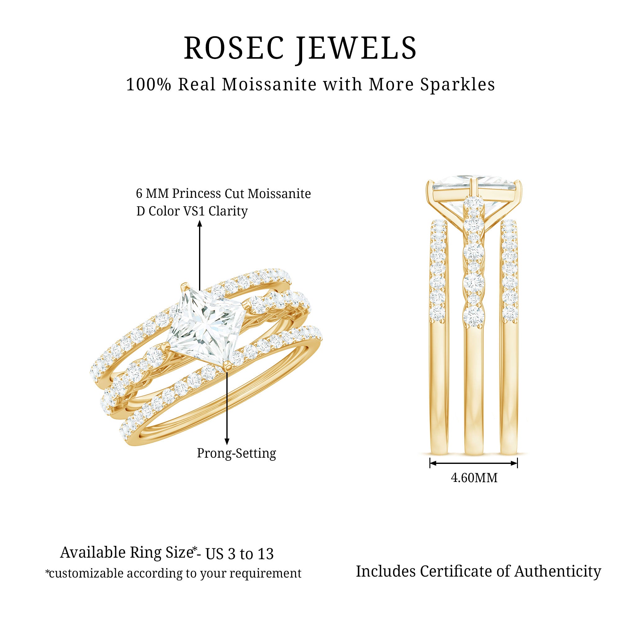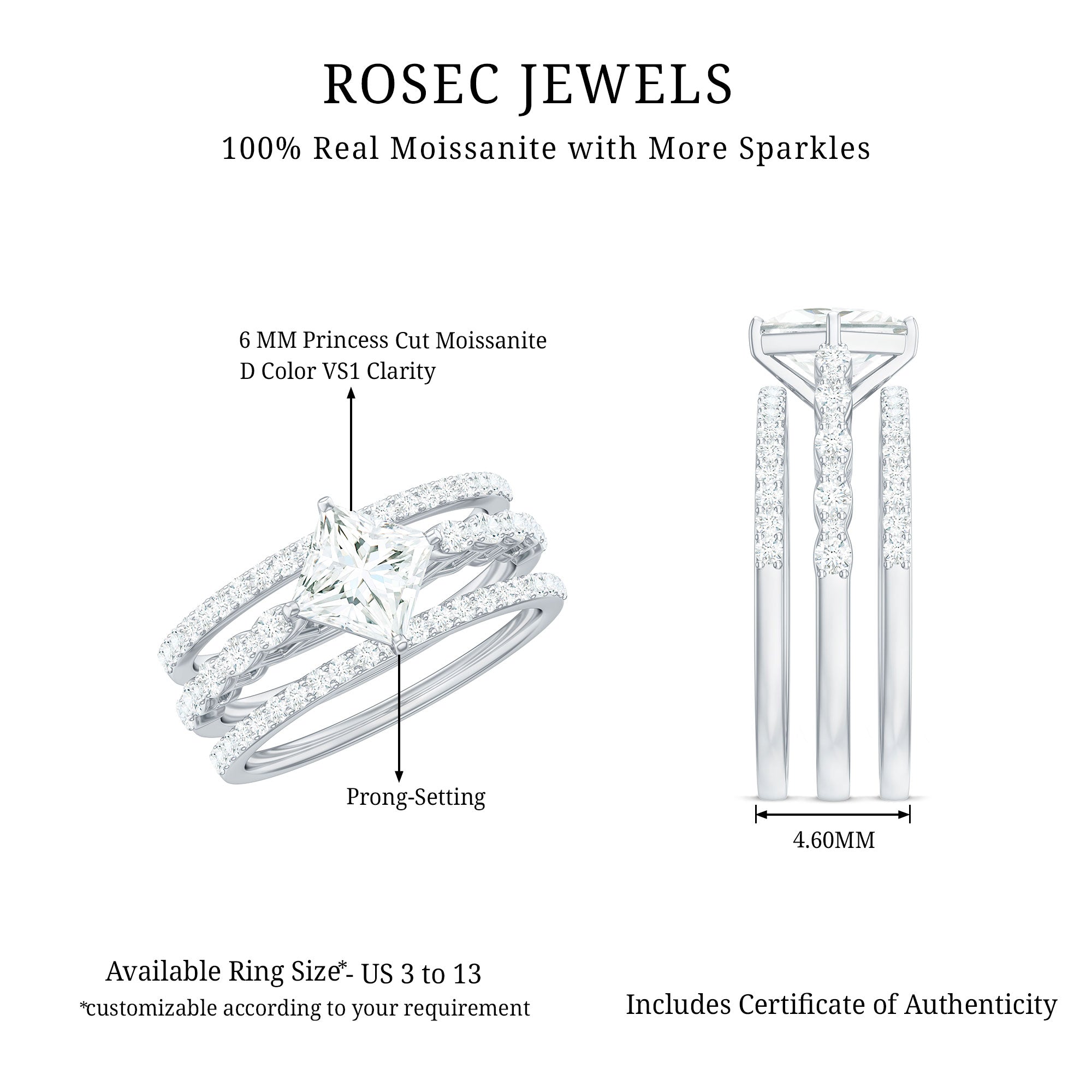 Princess Cut Moissanite 3 Piece Bridal Ring Set
