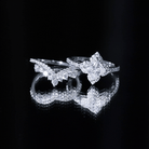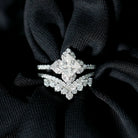 Your search for a perfect ring set may end here with this Moissanite Bridal Ring Set, precisely crafted with 14K White Gold Plated Silver. The Ring Set features an engagement ring along with an enhancer band. The wedding ring is embedded with a 6 MM Princess Cut Moissanite beautified by petite stones and the enhancer band is beautifully studded with round shape Moissanite. This Princess Cut Wedding Ring Set dazzles with the unmatchable shine of D-VS1 Quality Moissanite, which makes it the perfect ring set for your bride. The Engagement Rings Set will be delivered to you in a velvet pouch with the certificate of authenticity.