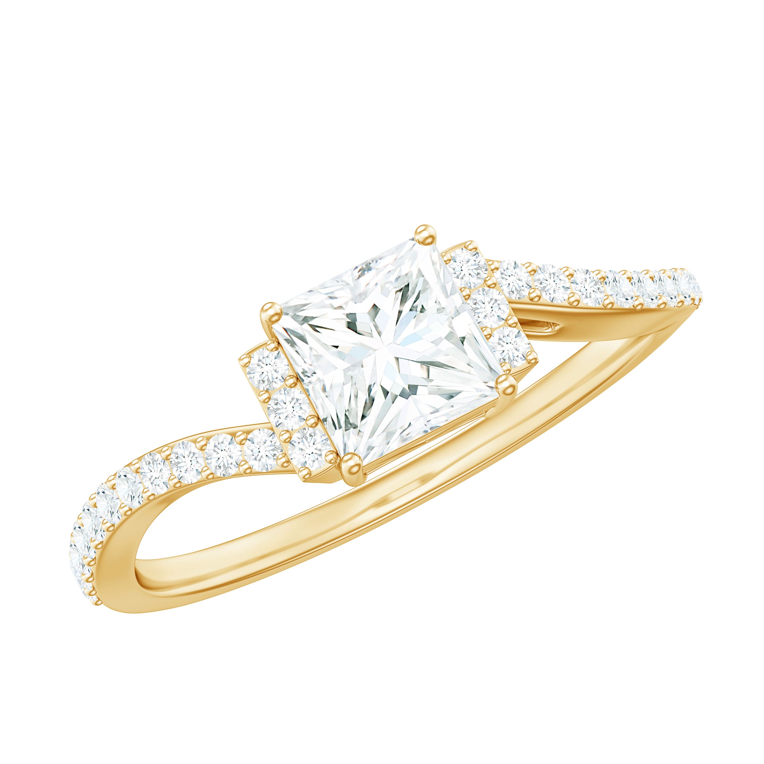 Timeless and chic, this Moissanite Engagement Ring perfectly embodies love and individuality. With a stunning 5 MM princess cut moissanite securely held in prong setting, it reflects light from every angle, creating a sparkle as bright as your smile. Made with D-VS1 quality moissanite, known for its incredible fire and clarity, each facet shines brilliantly, symbolizing a commitment made with both beauty and conscience. The sleek bypass shank, embellished with delicate moissanite accents, brings a modern touch and signifies two lives beautifully intertwining to move forward as one. This Bypass Engagement Ring is more than just jewelry, it celebrates connection and chemistry, crafted to honor your unique love story. Presented in a classy signature jewelry box and available in various sizes, this Half Carat Moissanite Ring for Women is designed to fit perfectly and make your special moment unforgettable. Its striking design ignites conversations and adds a sprinkle of magic to any proposal or milestone celebration.