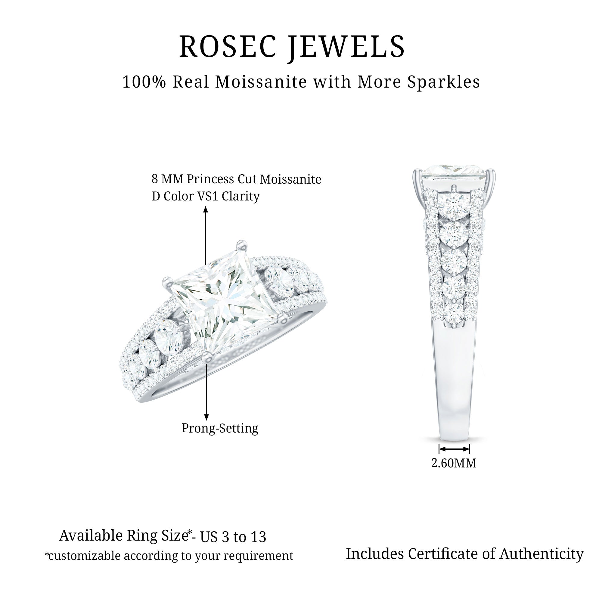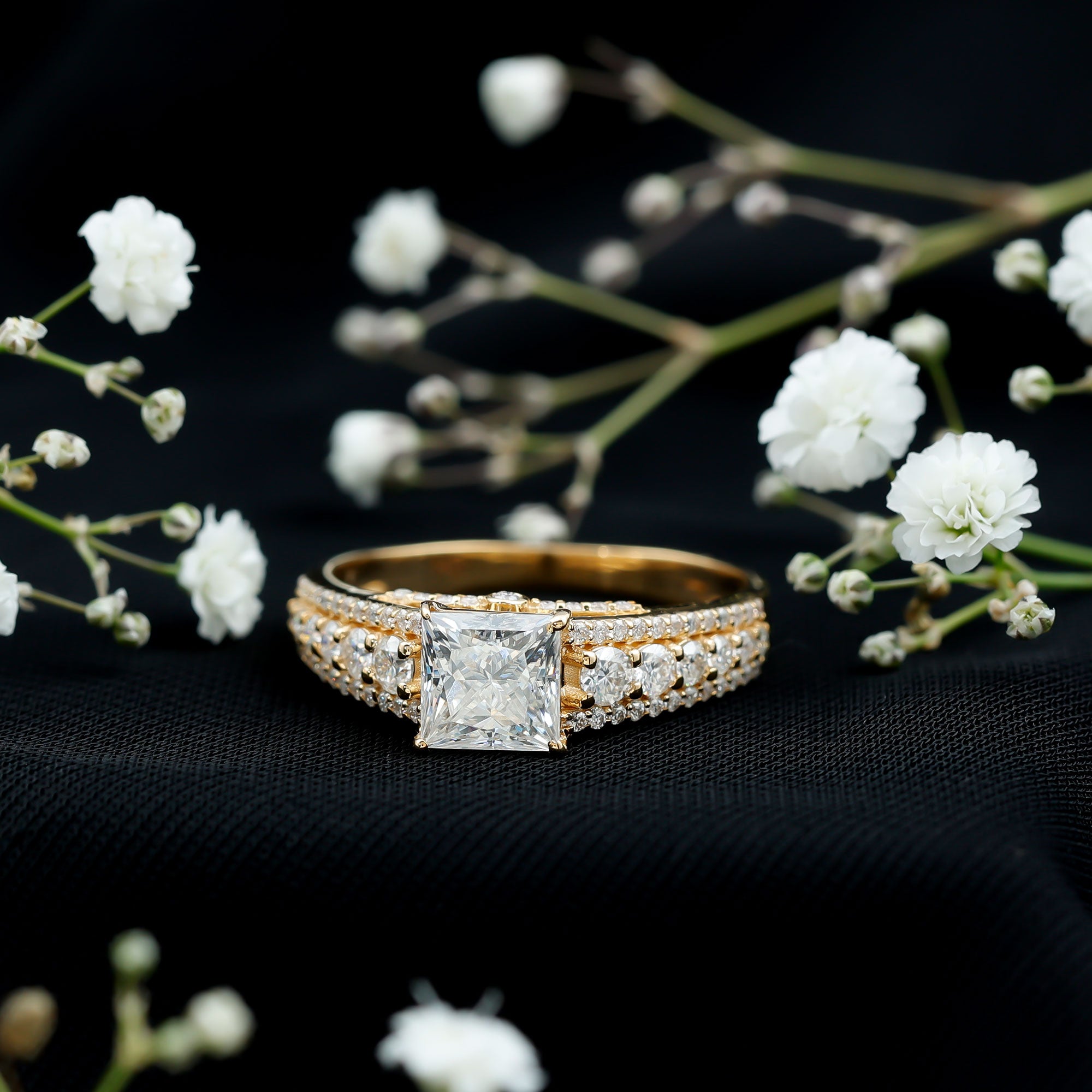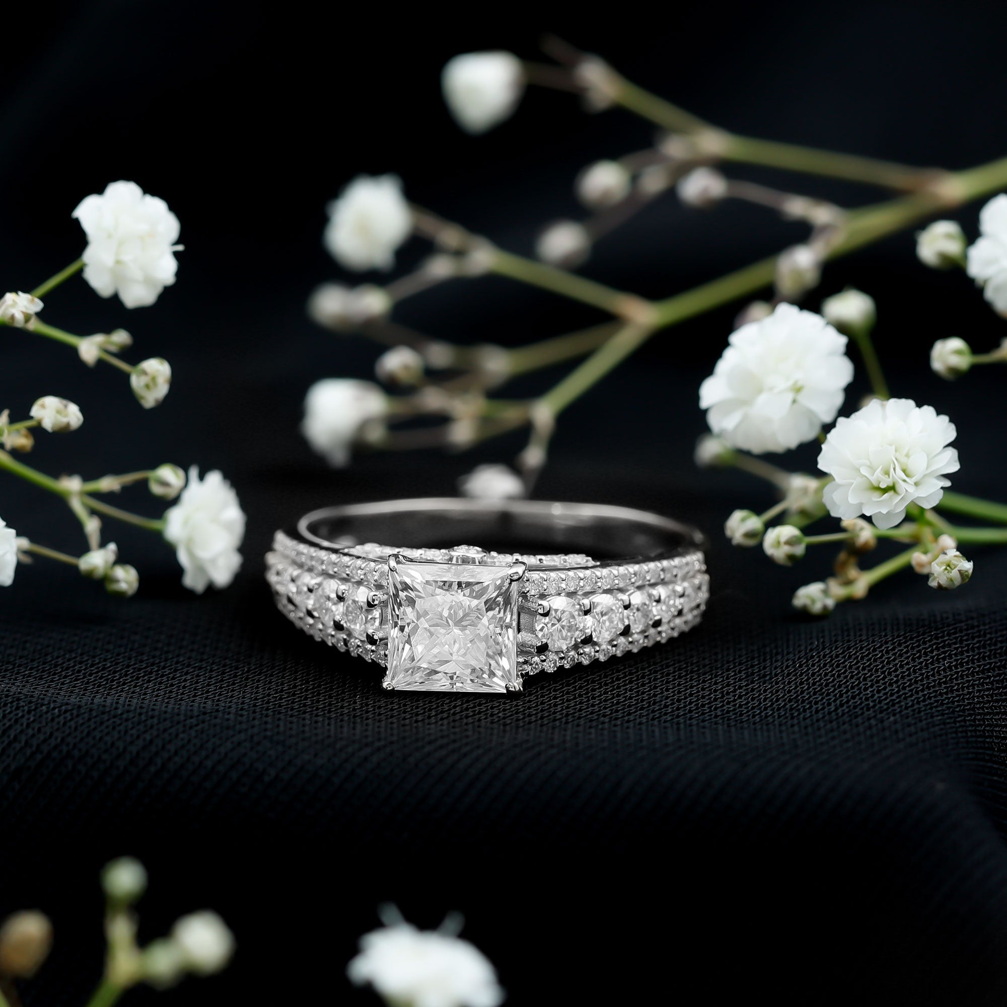Princess Cut Moissanite Engagement Ring with Side Stones