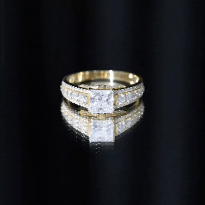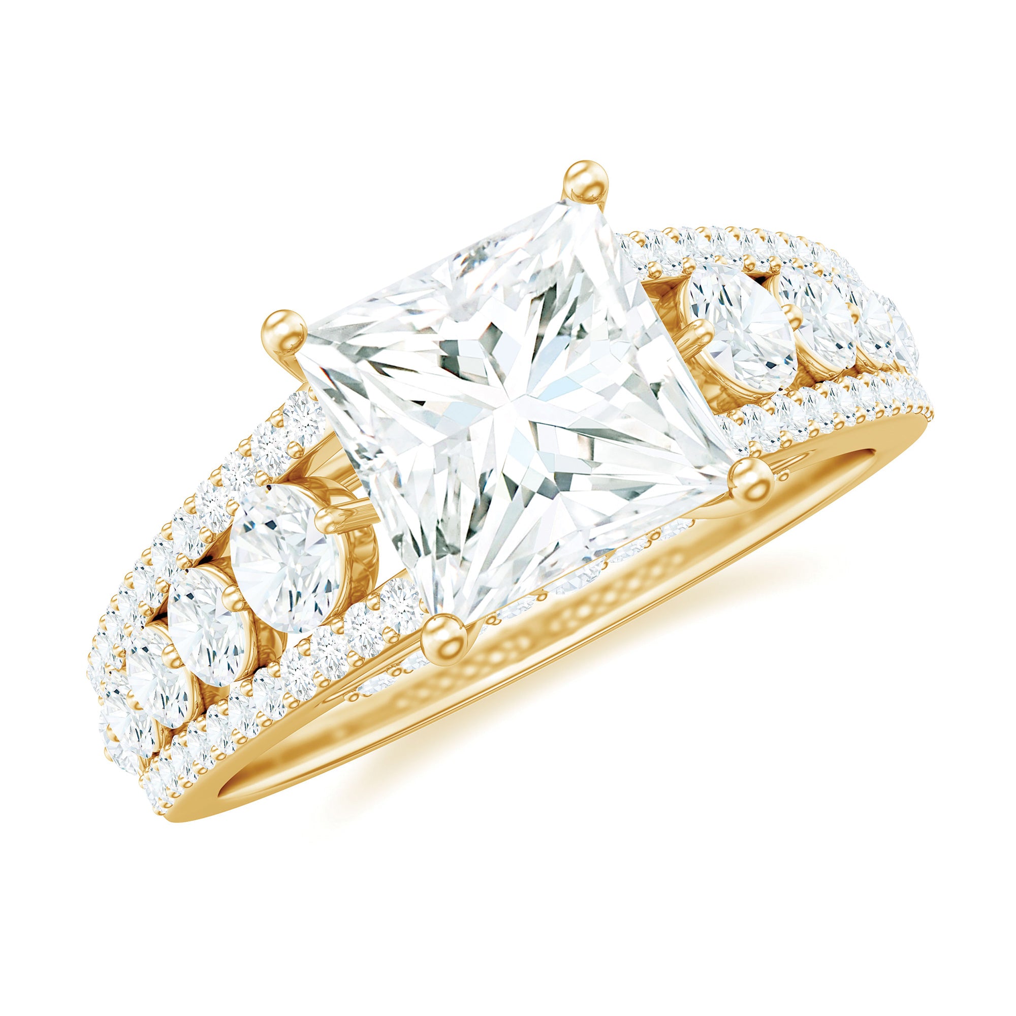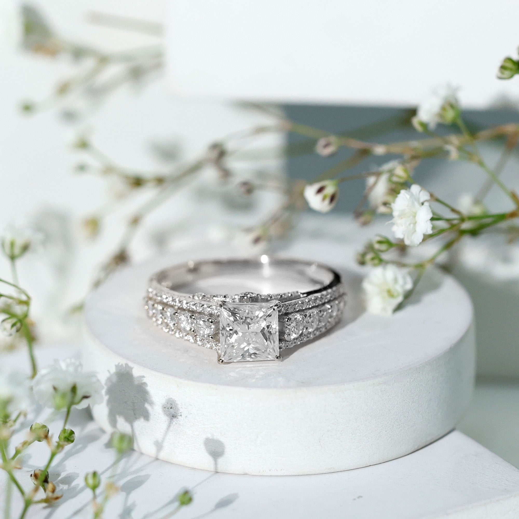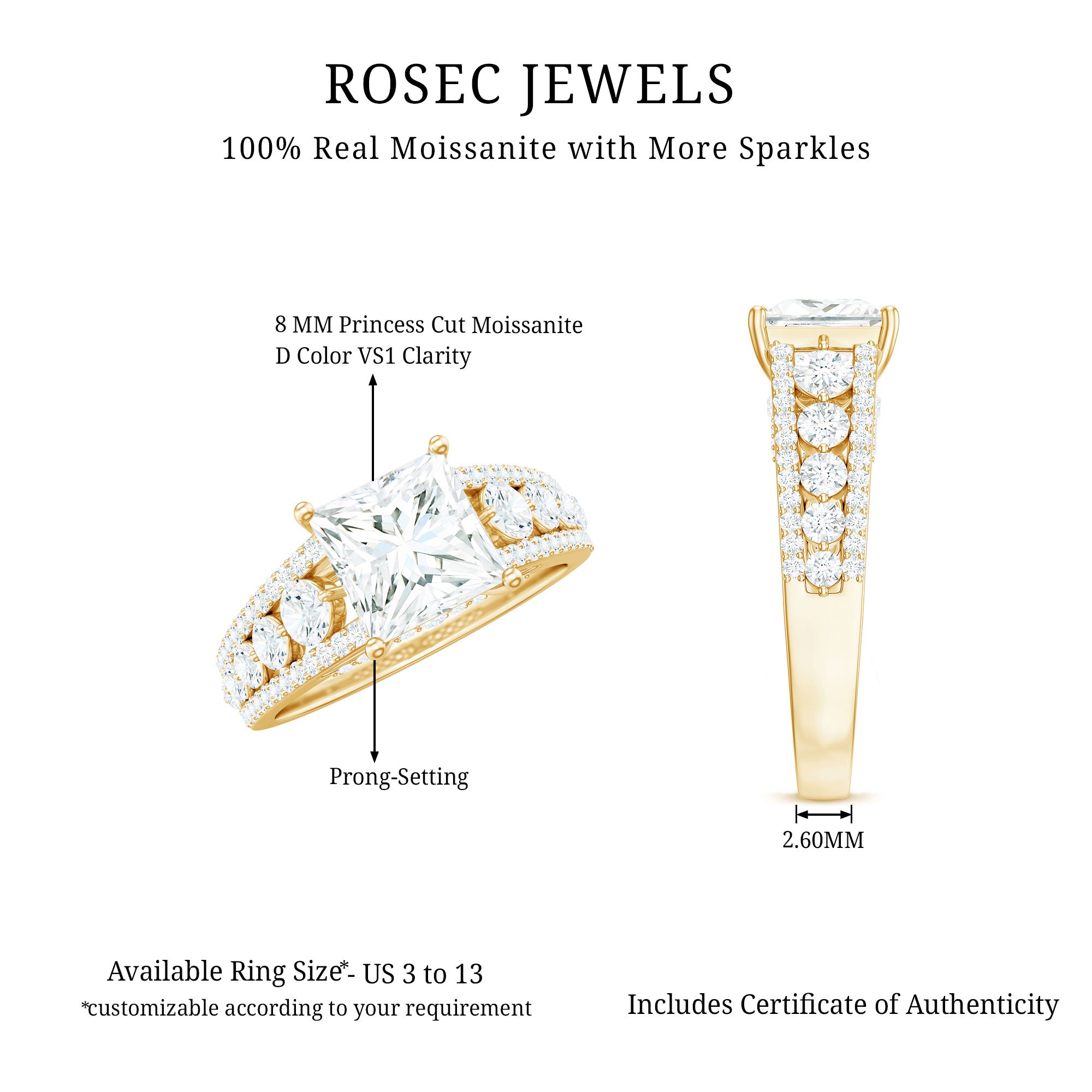 Princess Cut Moissanite Engagement Ring with Side Stones