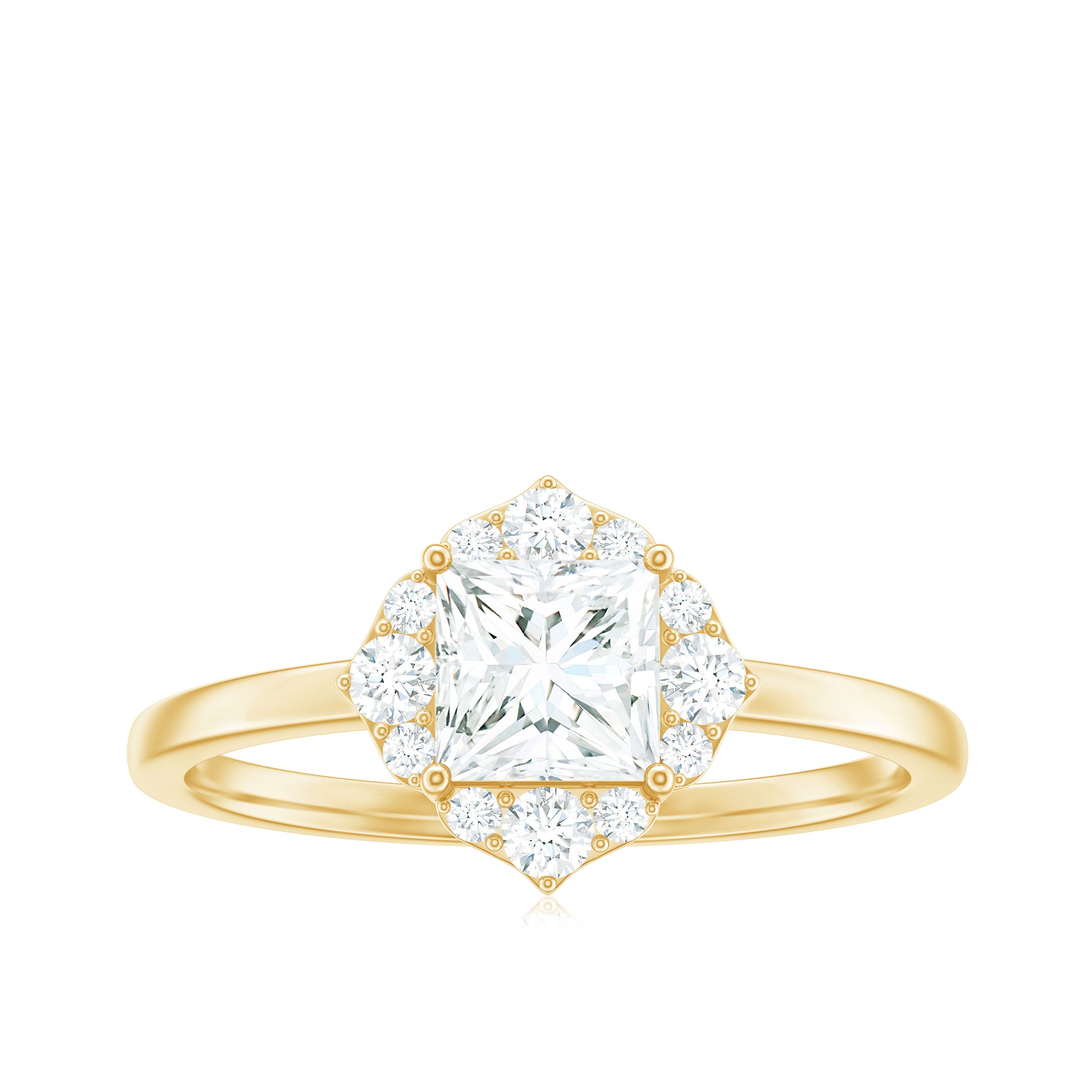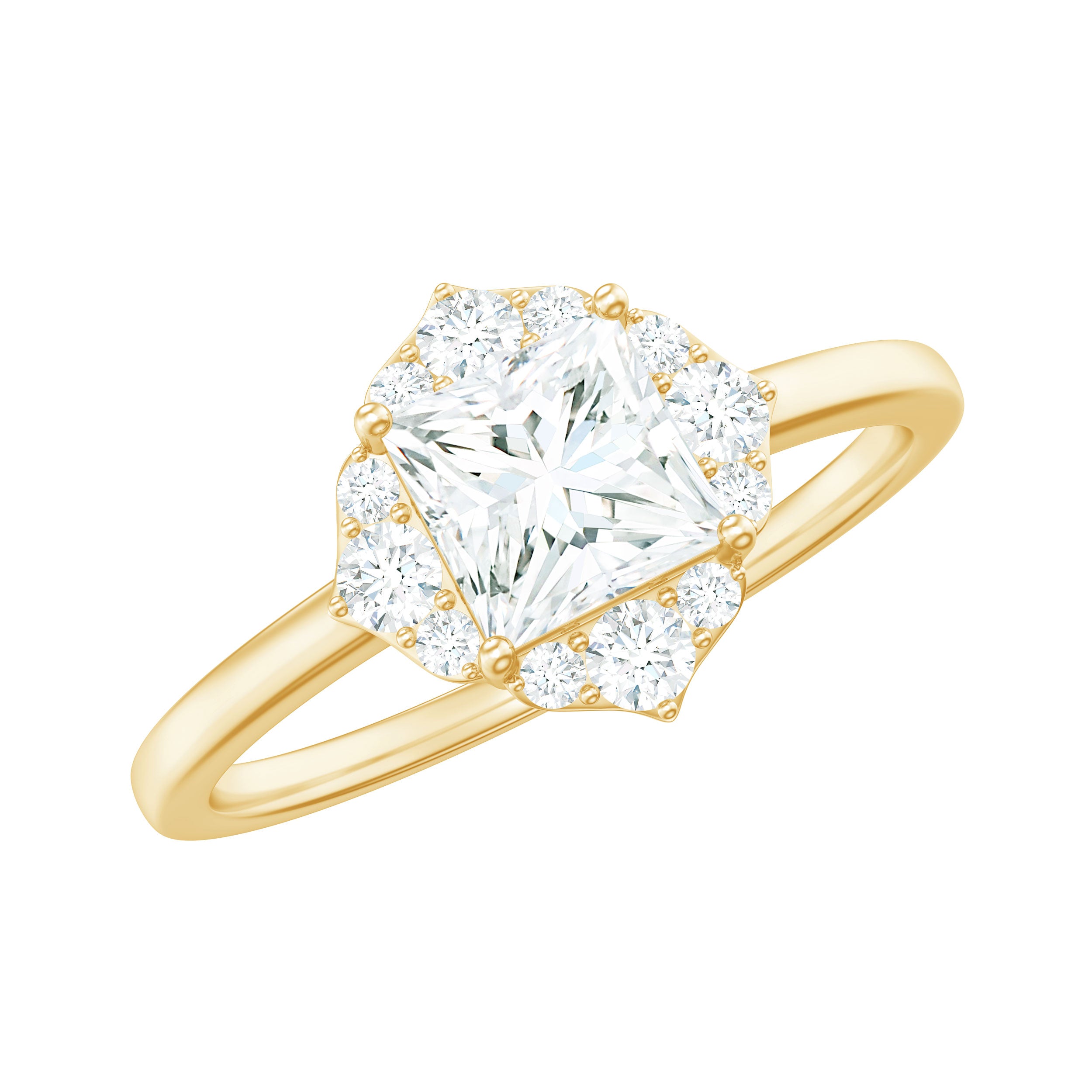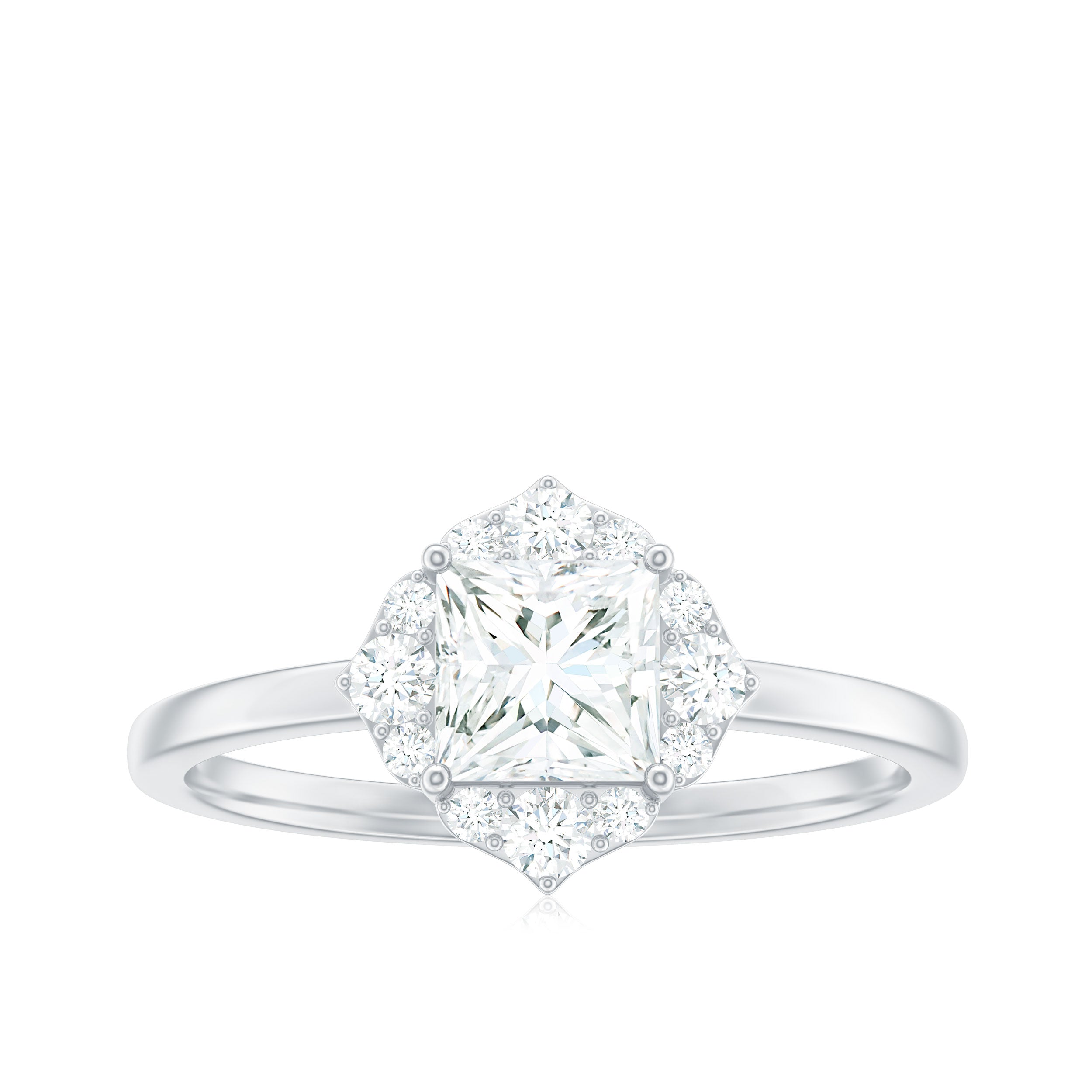 Princess Cut Moissanite Floral Engagement Ring for Women