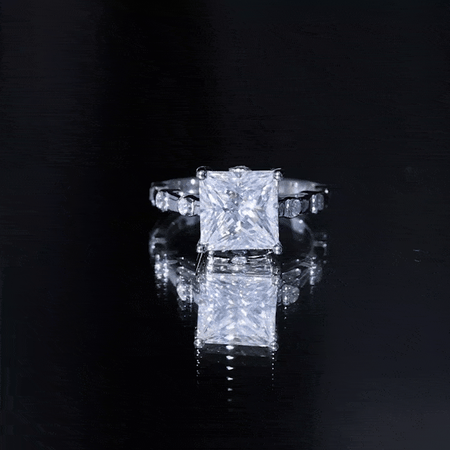 The princess cut is known for its square shape and defined corners, producing a symmetrical appearance that emphasizes the center gemstone. Its faceting structure enhances light reflection, creating noticeable brilliance.