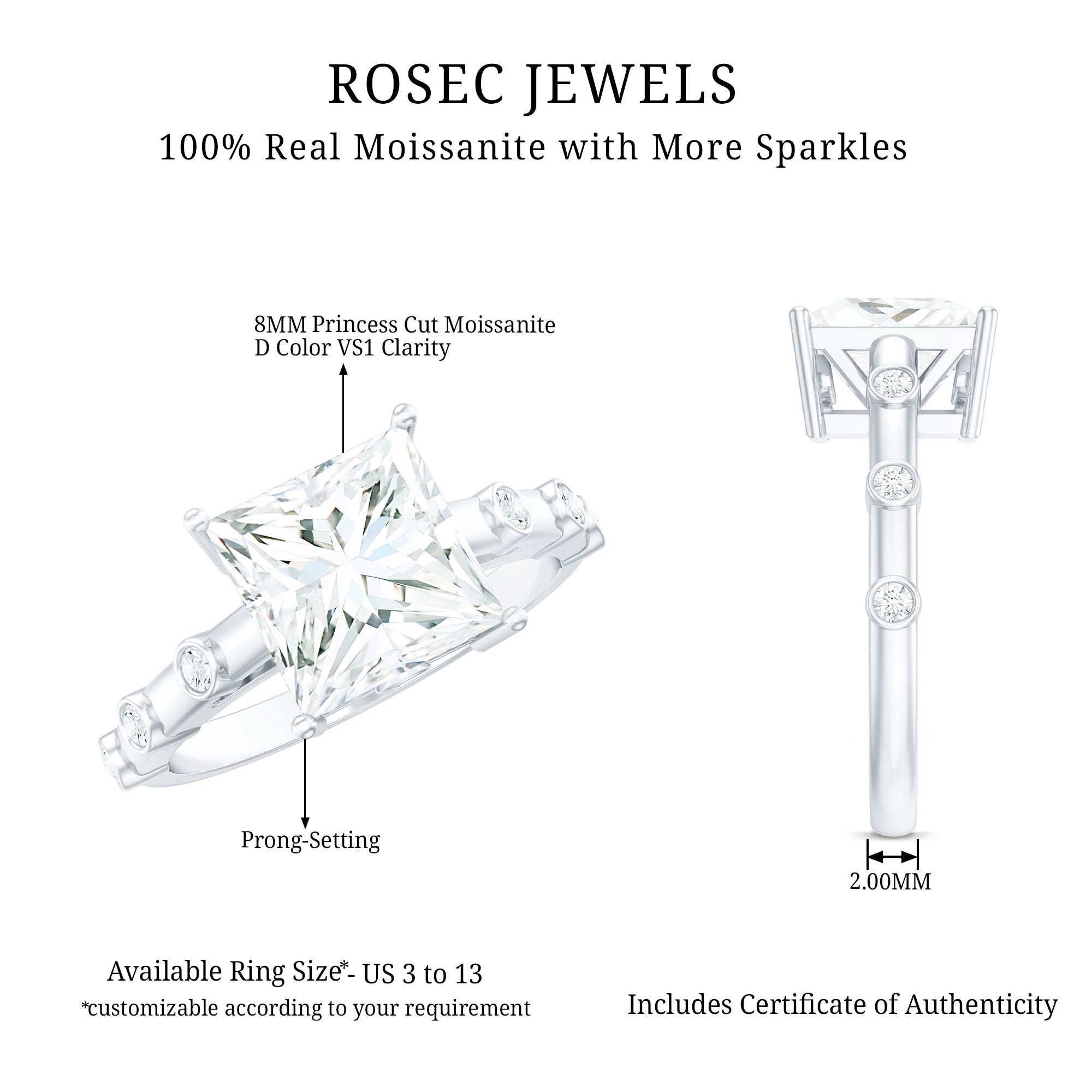 Princess Cut Moissanite Solitaire Engagement Ring