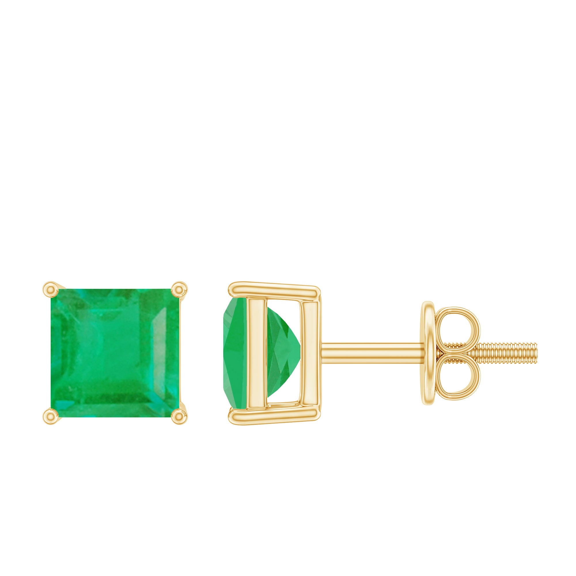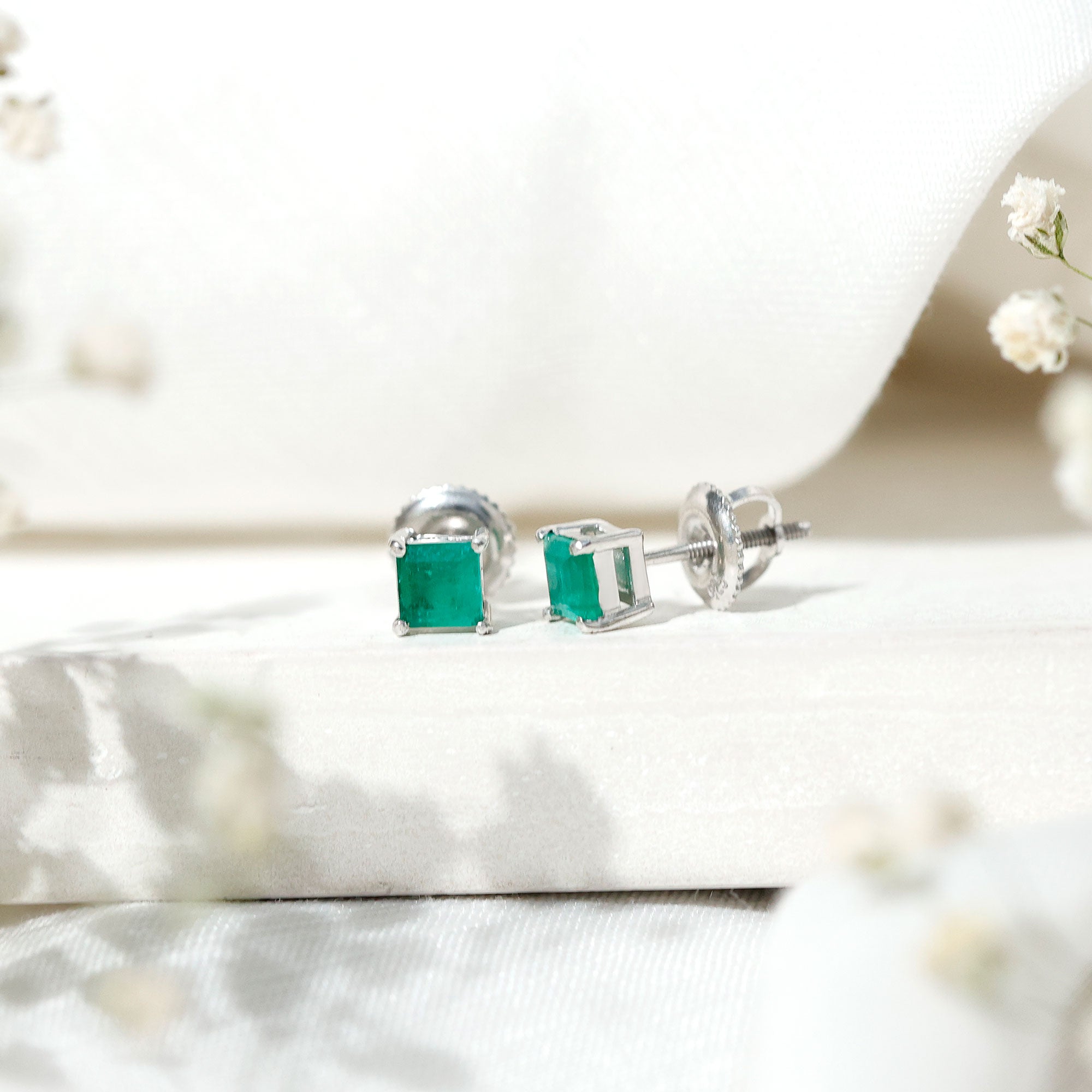 Princess Cut Natural Emerald Solitaire Stud Earrings
