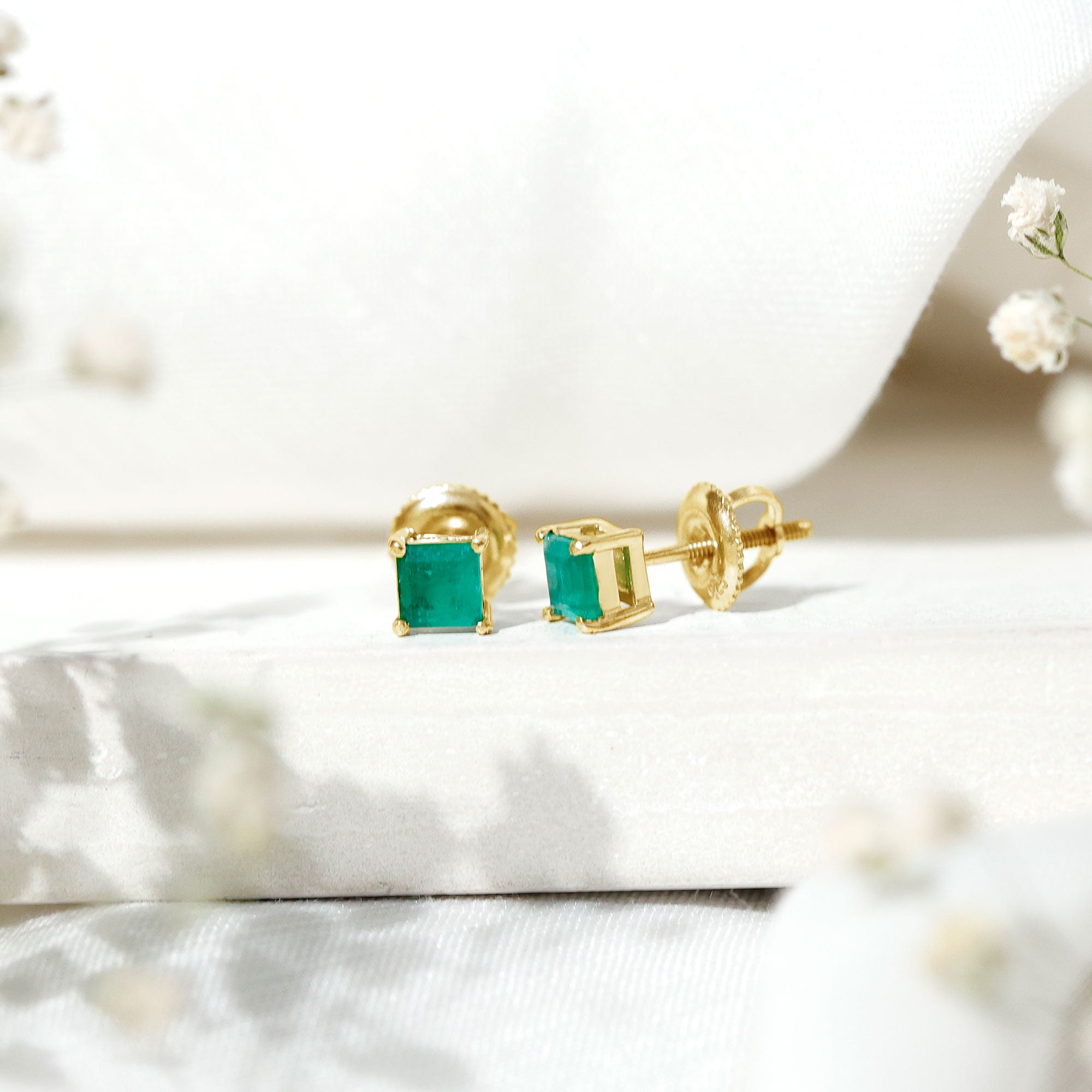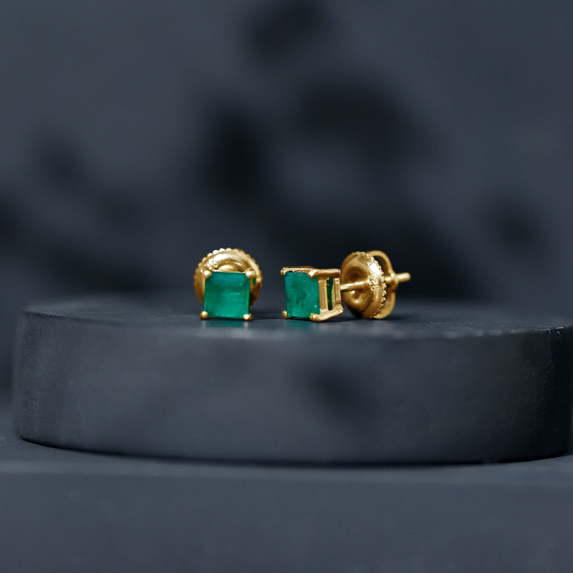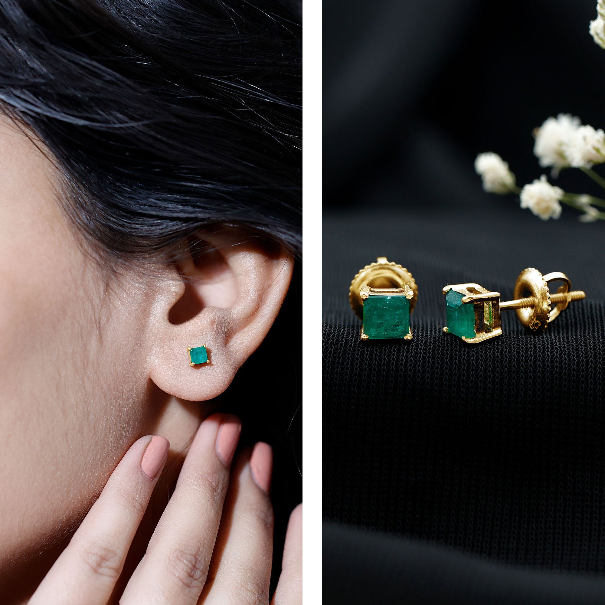 Discover effortless sophistication with these exquisite Emerald Stud Earrings, designed to beautifully catch the light from every angle. These Solitaire Earrings showcase a stunning 4 MM genuine emerald in a stylish princess cut, securely set in 4-prong setting. Perfect for everyday wear, these Green Emerald Earrings seamlessly combine elegance with simplicity. The AAA quality real emeralds bring a hint of luxury to any ensemble. Featuring a screw back closure, they remain comfortably in place throughout the day, whether you are attending a special occasion or simply enhancing your daily attire. Thoughtfully selected, these May Birthstone Earrings also serve as a meaningful gift for anniversaries, birthdays, or any memorable celebration. With their blend of classic design, contemporary flair, and premium gemstones, these Princess Cut Stud Earrings are the perfect way to convey elegance and confidence.