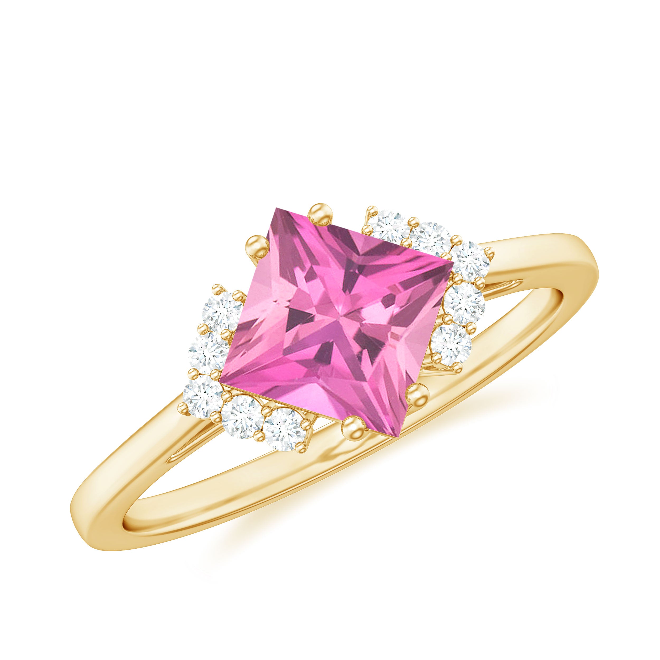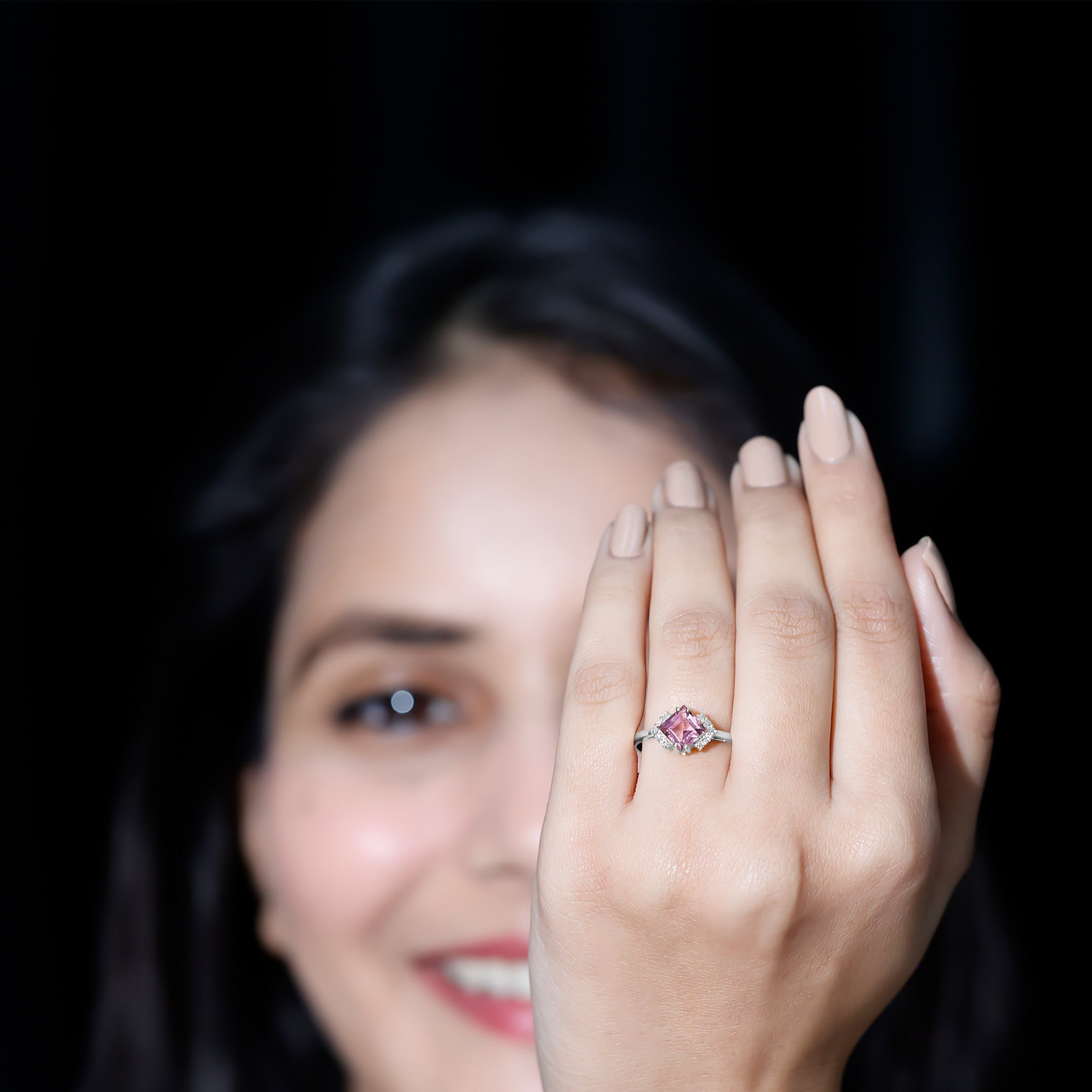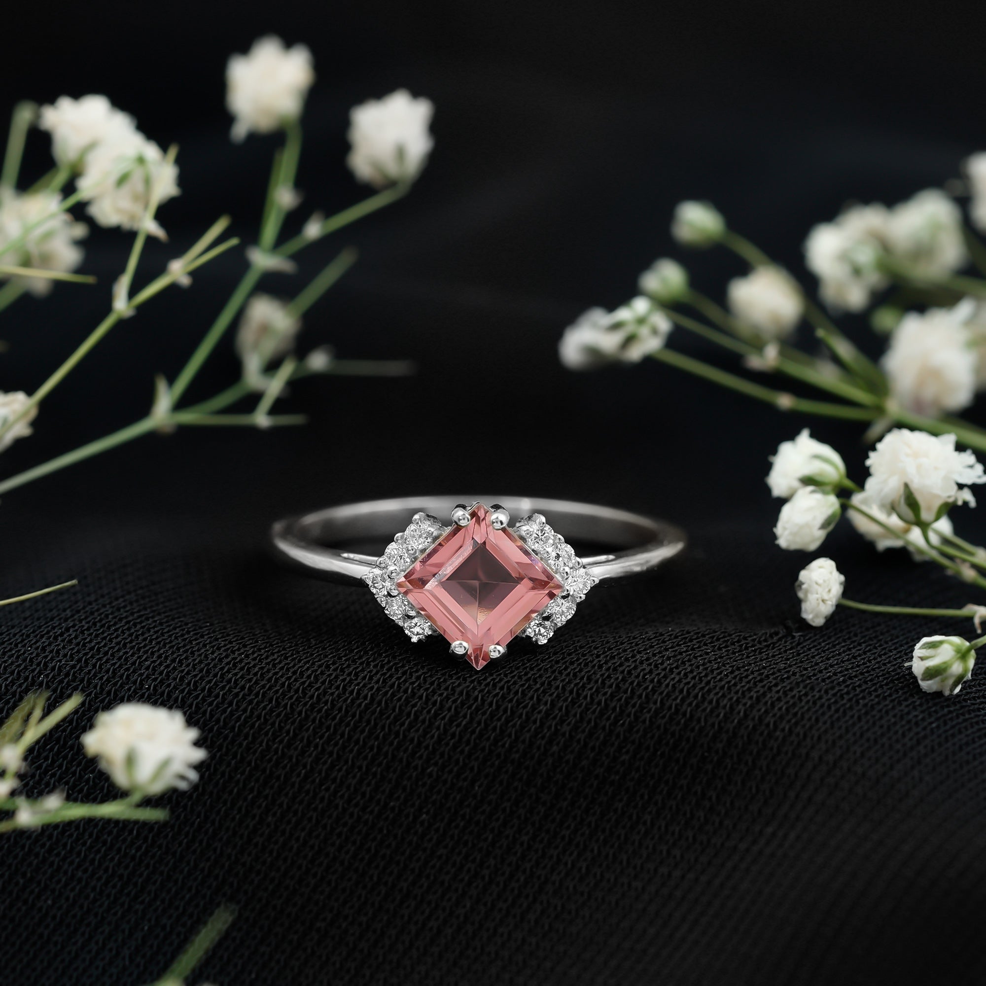 Princess Cut Pink Tourmaline Engagement Ring with Diamond Accent