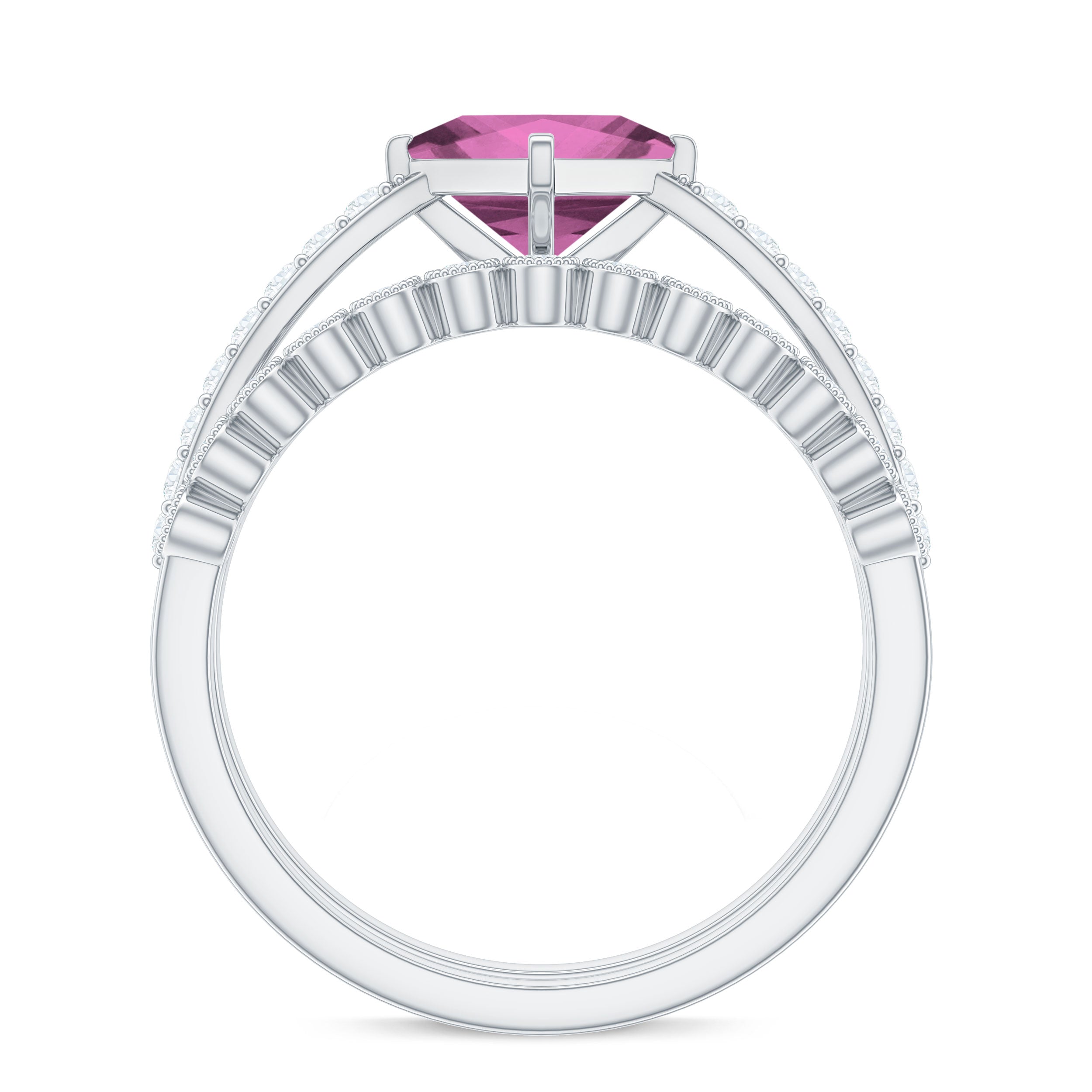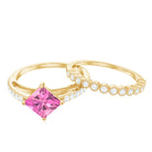 Princess Cut Pink Tourmaline Wedding Ring Set with Moissanite