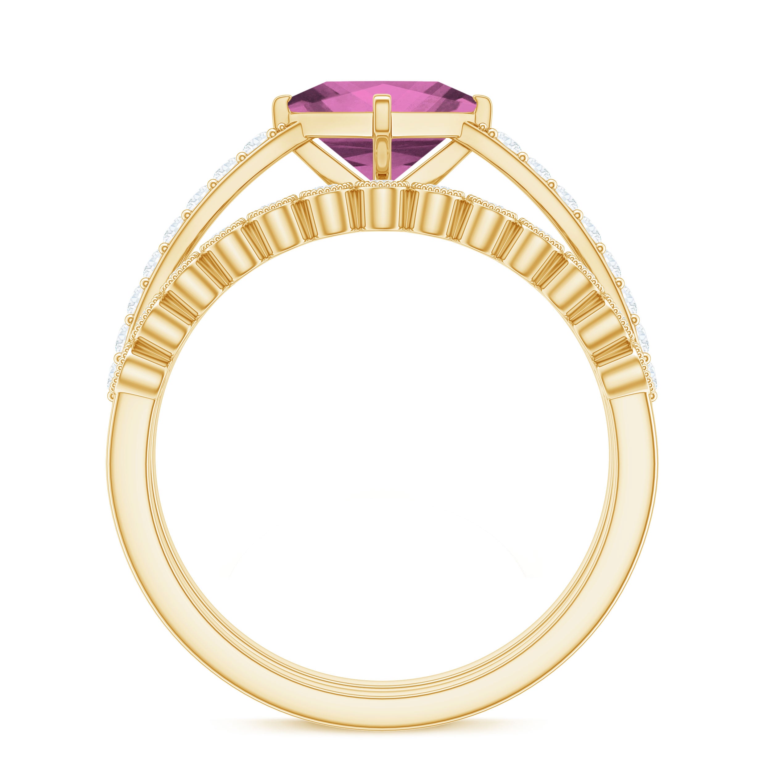 Flaunt our Solitaire Ring Set with your favourite attire to be in the spotlight of any event. Embellished with Princess Cut Pink Tourmaline while more Round Moissanite studded on the shank. The Unique Ring Set is crafted in Solid Metal for a luxe appeal and will complement your attires effortlessly. Wear our Pink Tourmaline Ring Set to create a gorgeous look.