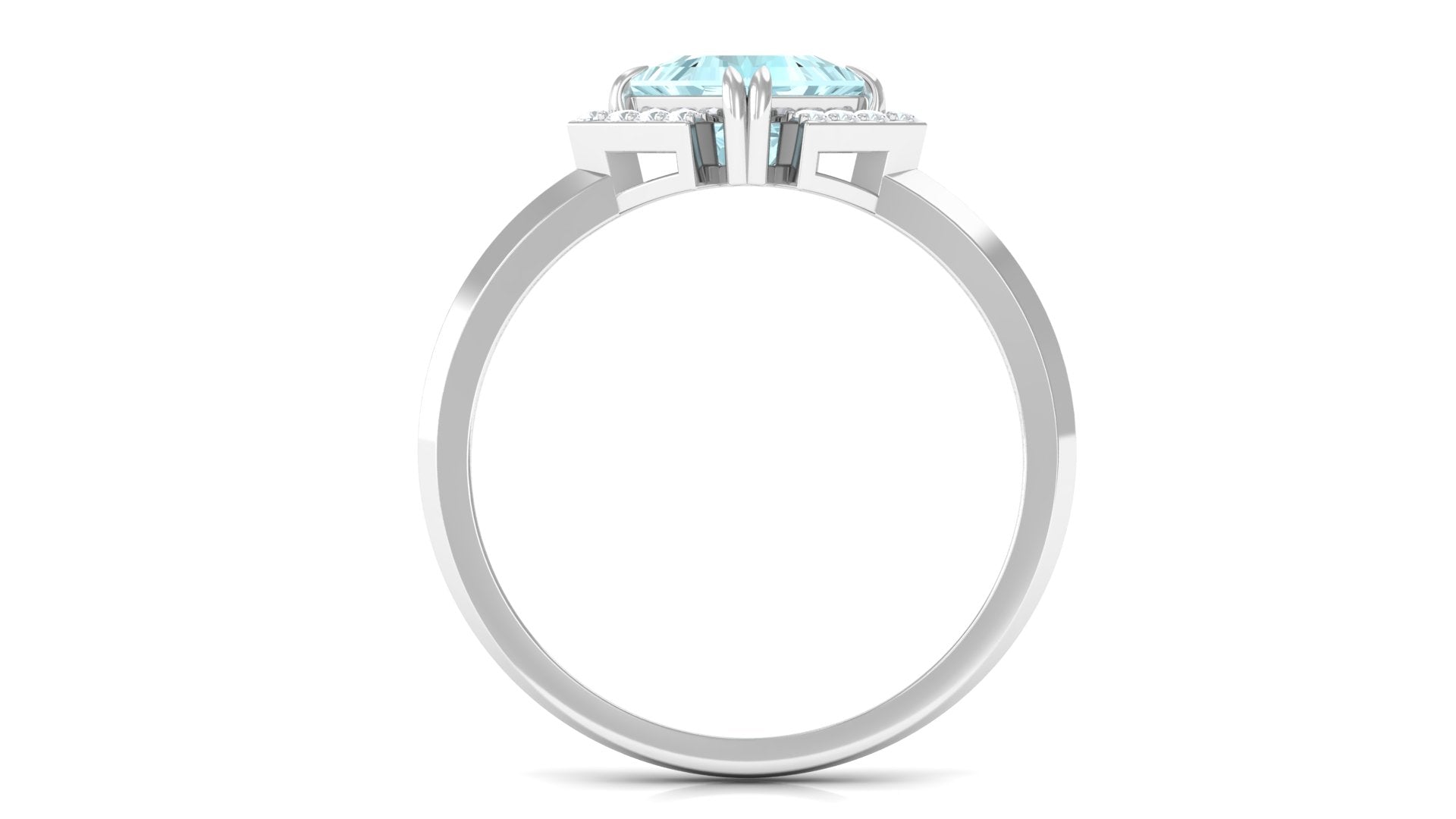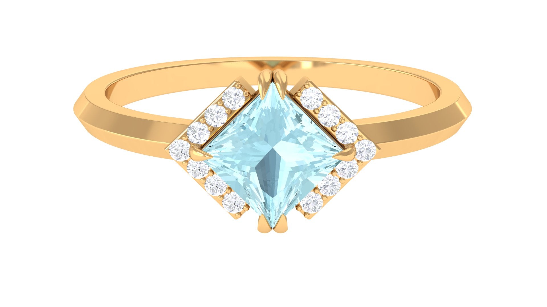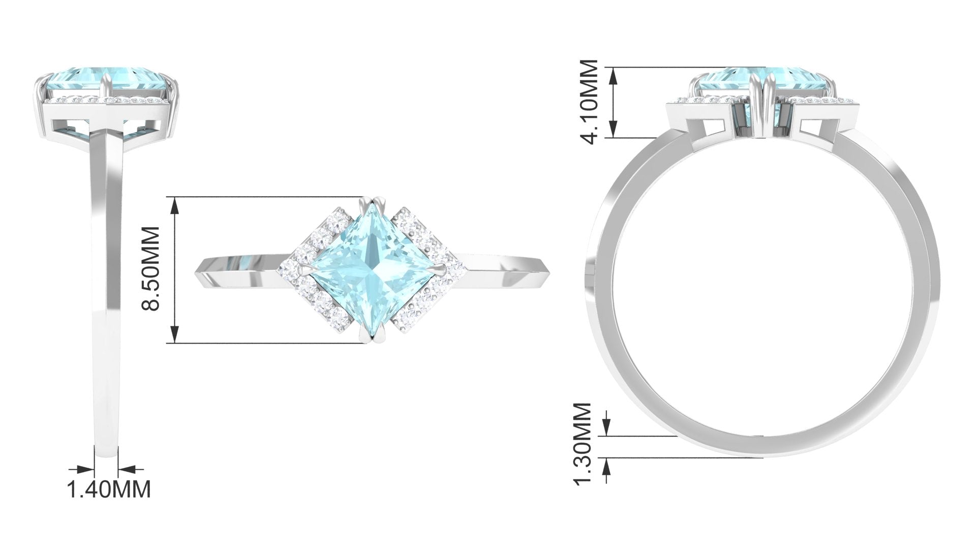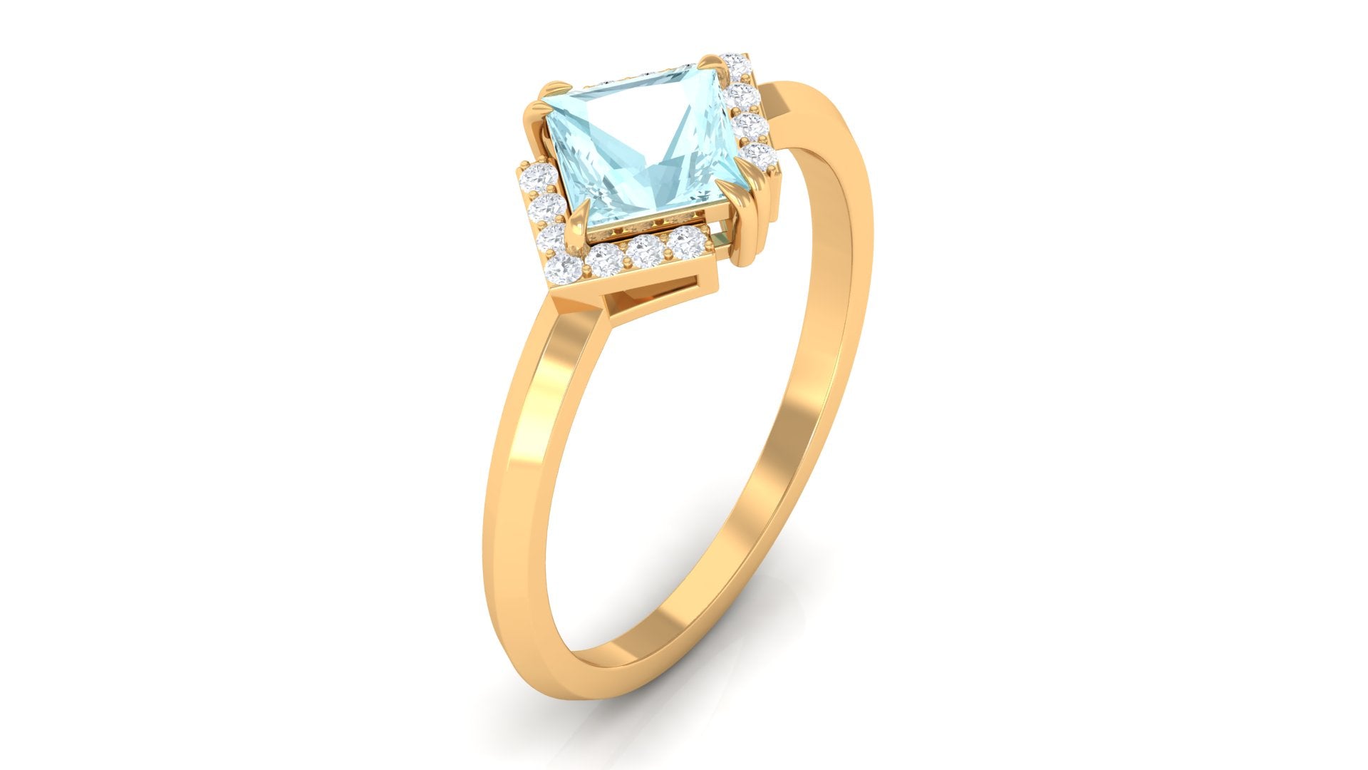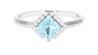 Princess Cut Sky Blue Topaz Simple Engagement Ring with Diamond