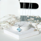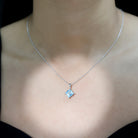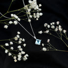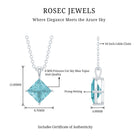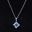 Add elegance to your outfit with this Sky Blue Topaz Pendant, handcrafted with 14K White Gold Plated Silver. The December Birthstone Pendant features an 8 MM Princess Cut Sky Blue Topaz of AAA quality securely placed in 4 Prong Diagonal Setting. This Solitaire Pendant is accentuated with a standard bail and dangles with a sturdy cable chain that makes it beautifully sit on the neckline and complete the look for the special day. This Square Pendant Necklace will be delivered in premium quality with a certificate of authenticity.