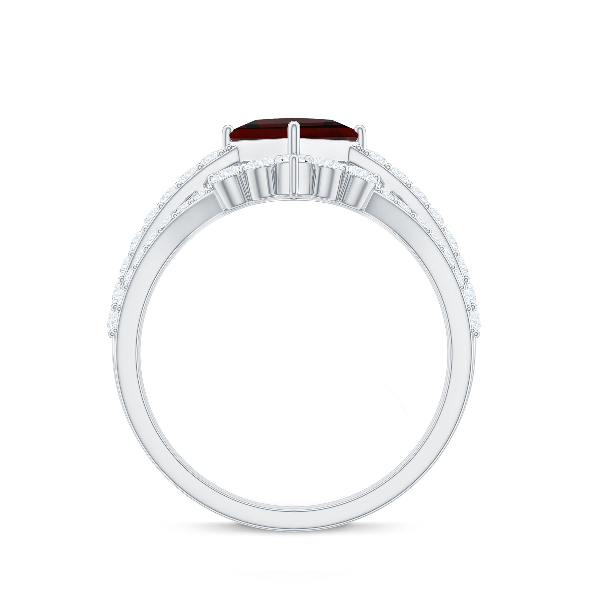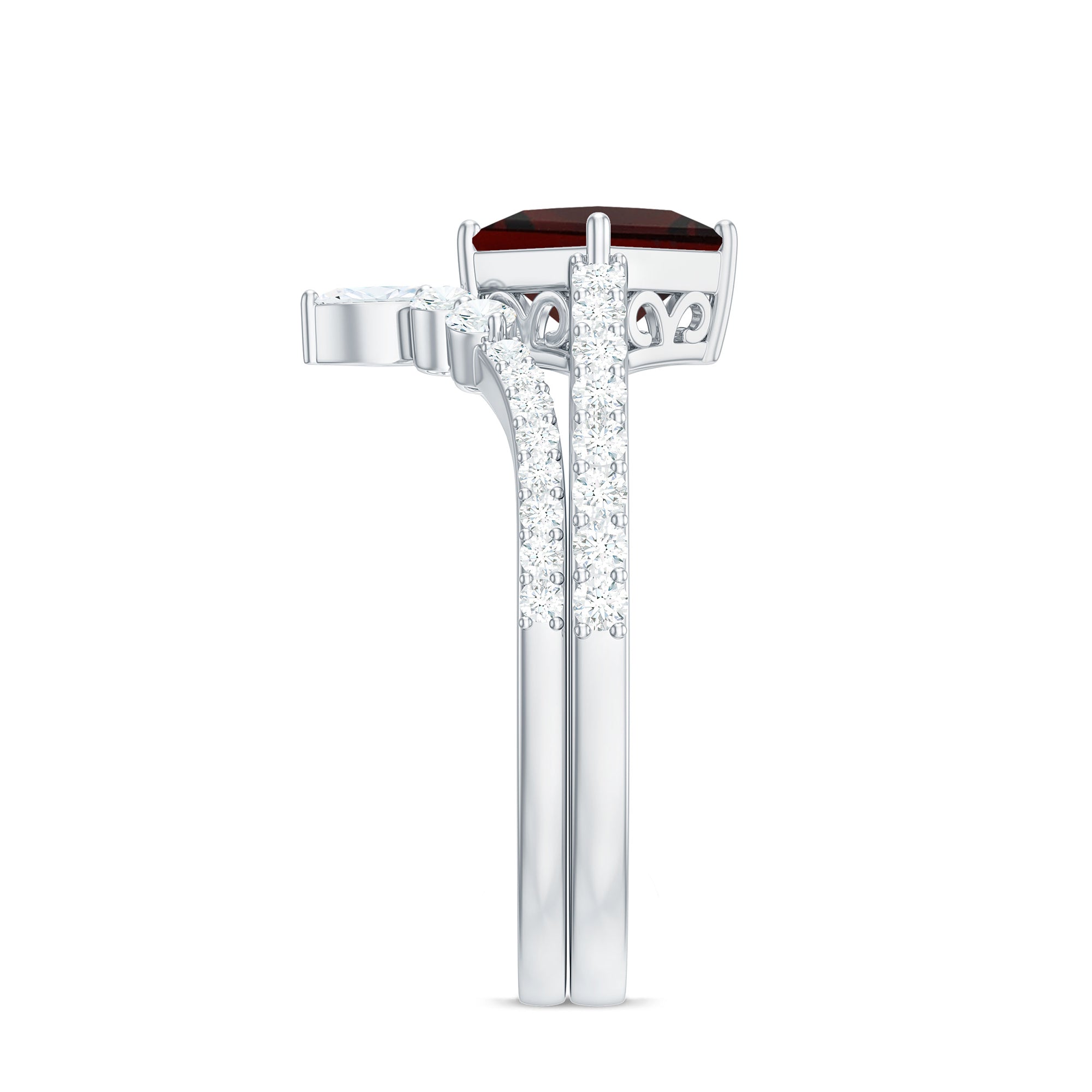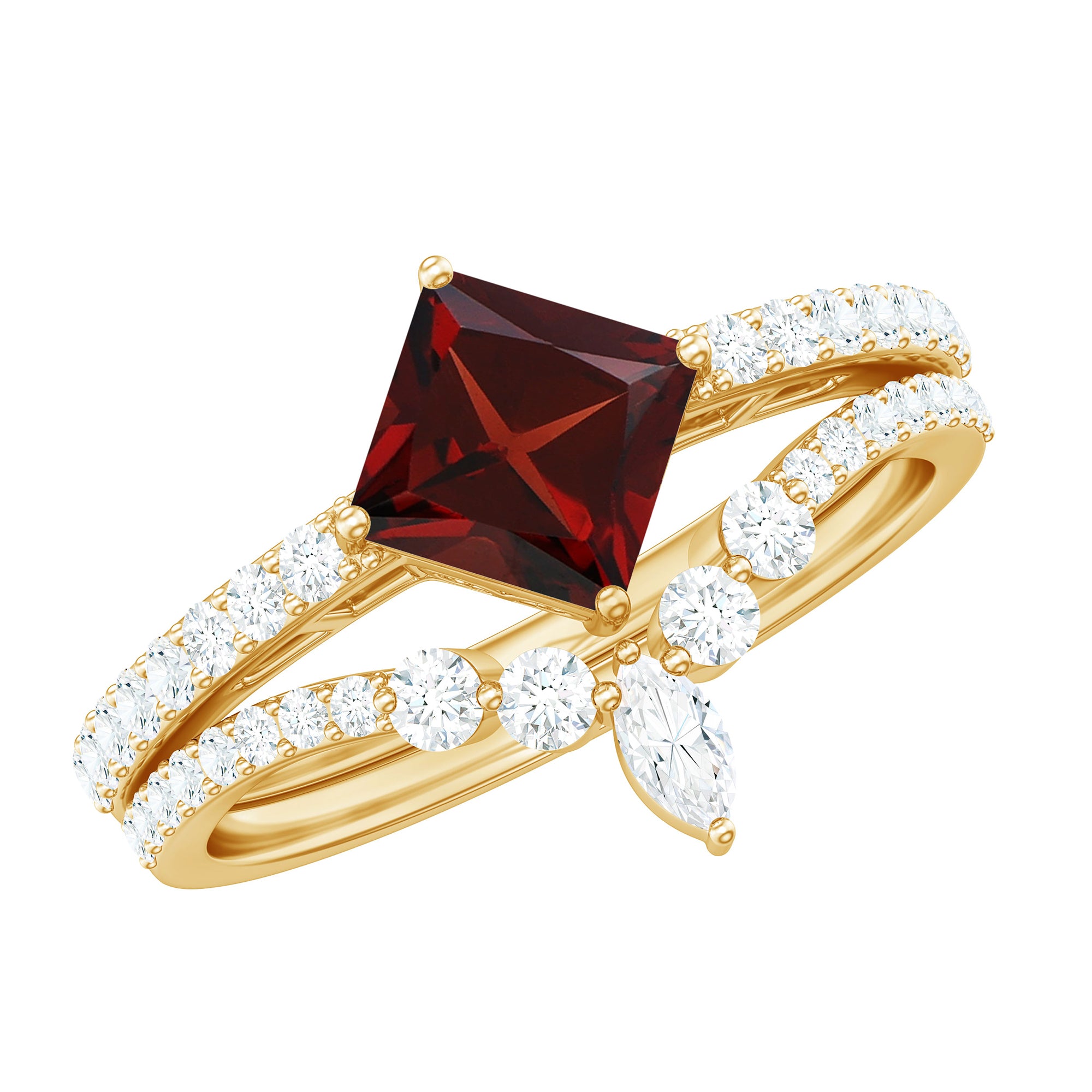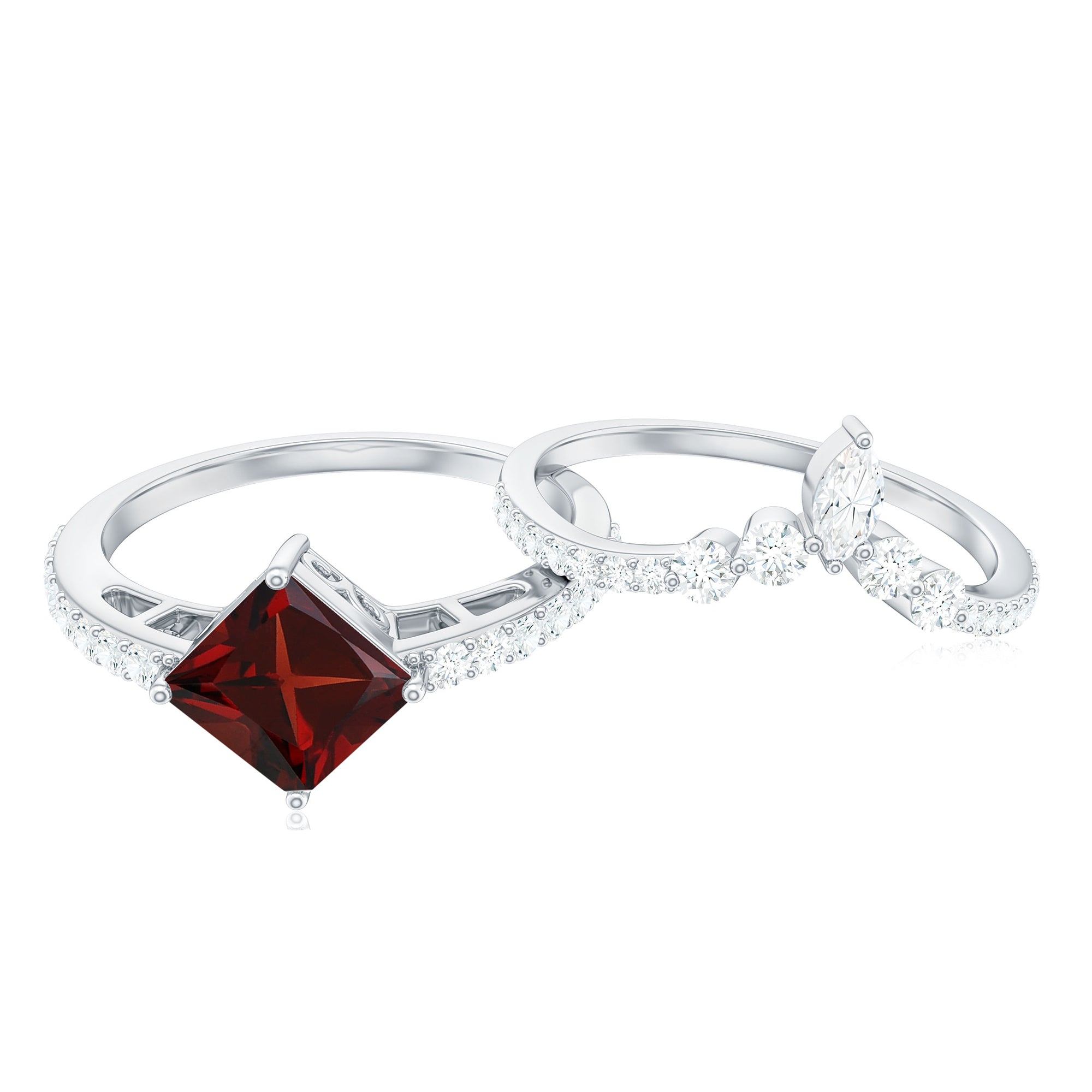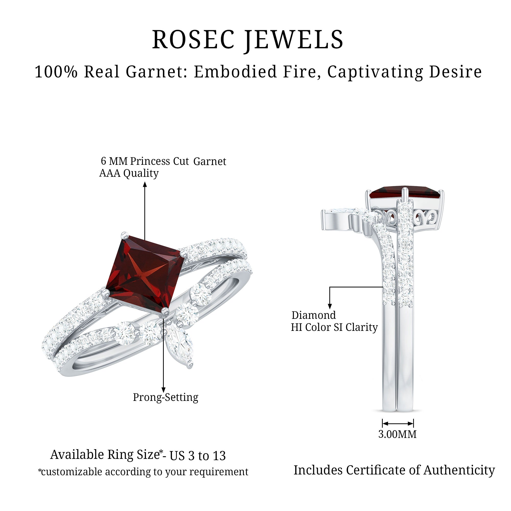 Natural Princess Cut Garnet Diamond Wedding Bridal Ring Set