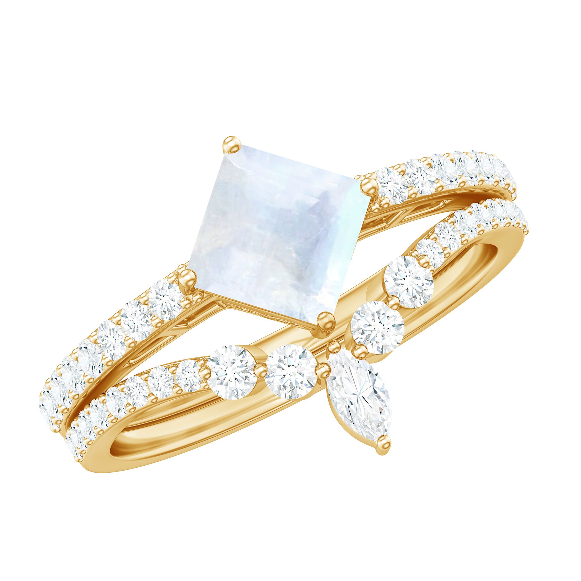 Princess Cut Solitaire Moonstone Designer Ring Set with Diamond