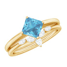 Princess Cut Swiss Blue Topaz Solitaire Ring Set with Diamond