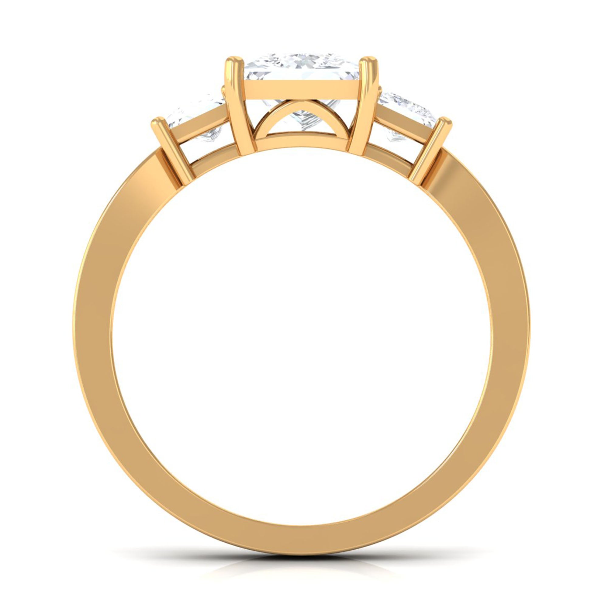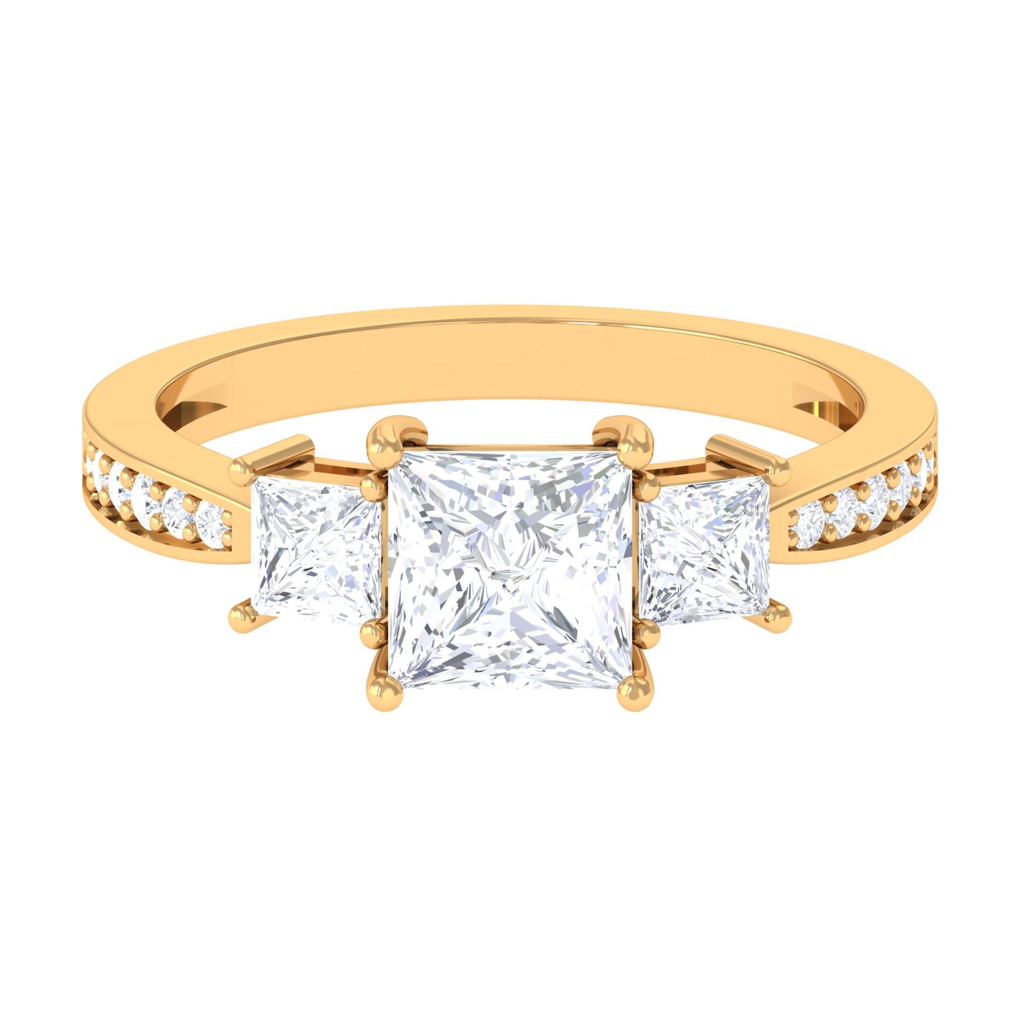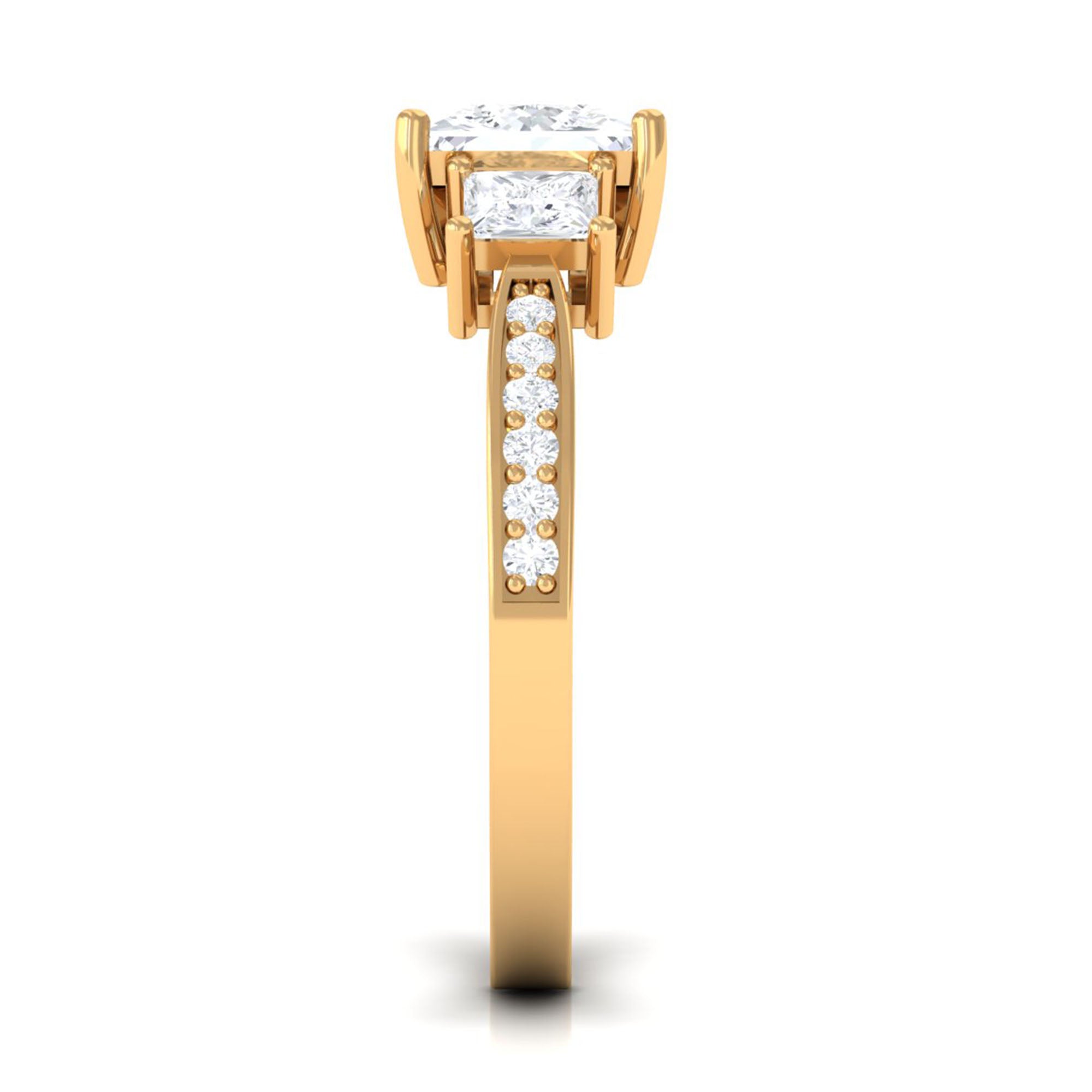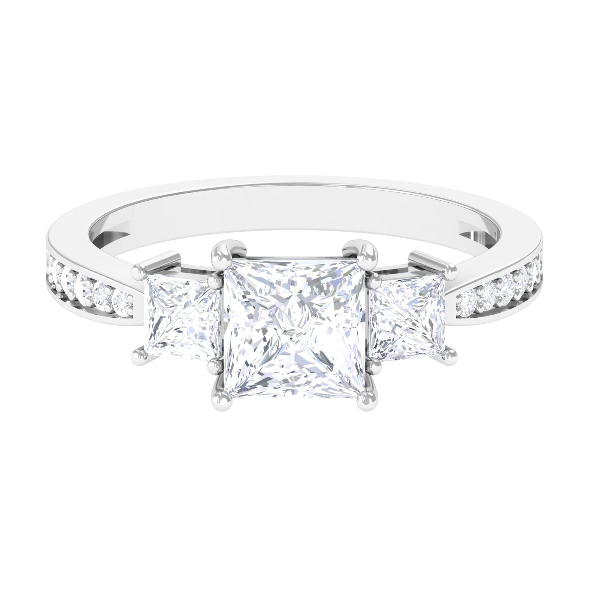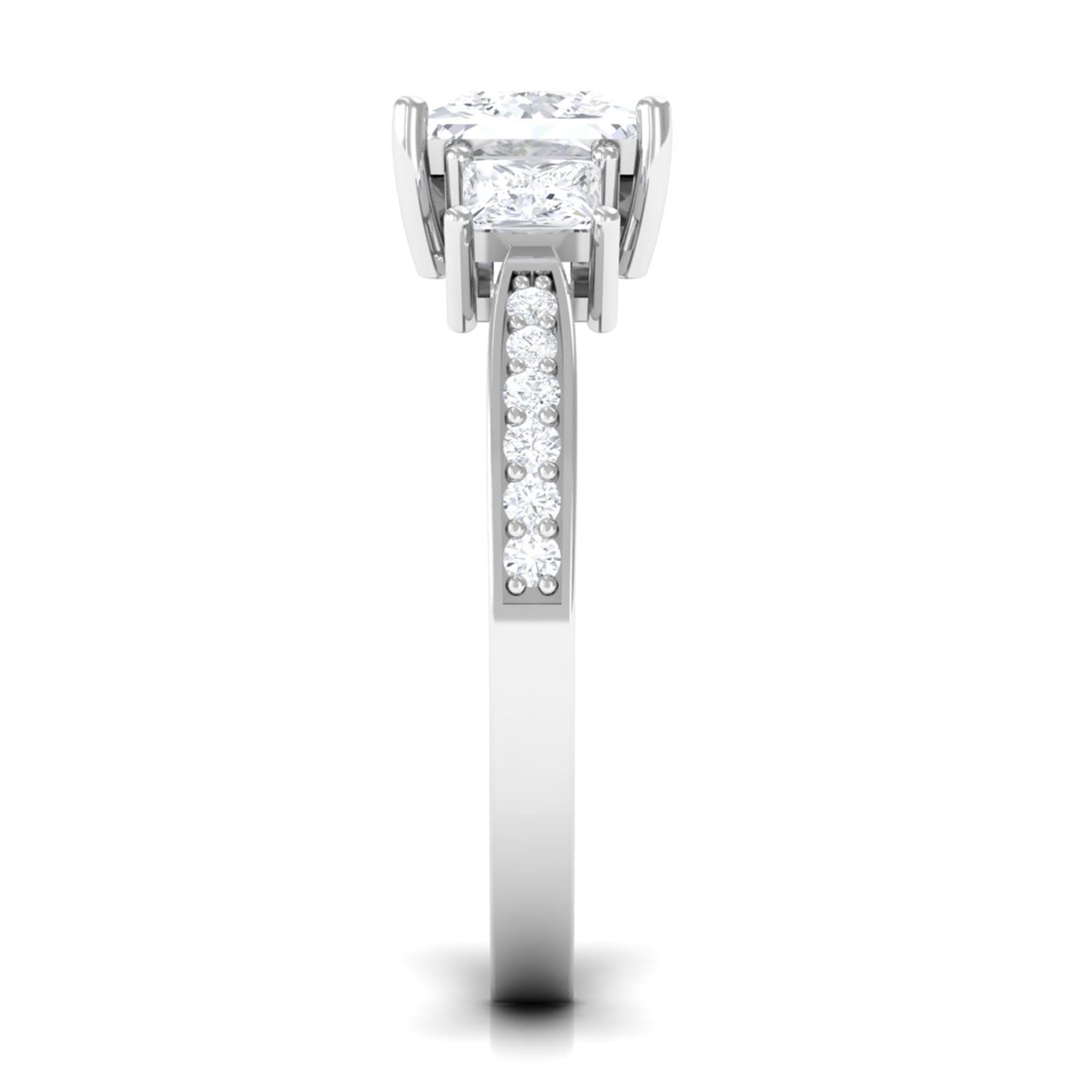 Elevate your evening ensemble with the charming allure of this Three Stone Ring. It showcases three sparkling Princess Cut Cubic Zirconia stones in a prong setting, accompanied by Round Shape Zircon side stones set in a prong setting. Crafted with precision, this Lovely CZ Engagement Ring is a touch of sophistication and glamour to your look.