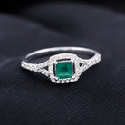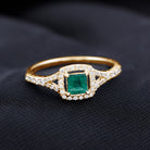 Princess Cut Emerald Engagement Ring with Diamond Split Shank
