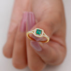 Looking for a ring that is stylish, modern, and full of charm? This Emerald and Diamond Engagement Ring has it all. Its split shank design gives it a contemporary feel while keeping it elegant and timeless. At the center sits a 4 MM princess cut emerald, held securely in claw setting. Surrounding the emerald is a halo of small round diamonds, adding sparkle that beautifully enhances the vibrant center stone. The split shank band is also lined with round cut diamonds, giving the Princess Cut Engagement Ring extra brilliance. Its design is simple yet striking, making it perfect for everyday wear or special moments. The combination of the AAA quality natural emerald and the glittering HI-SI quality real diamonds creates a look that is both sophisticated and eye-catching. Crafted with care and precision, this Real Emerald Engagement Ring is built to last, ensuring it becomes a treasured piece for years to come. It is also a great choice for proposals, anniversaries, or any occasion where you want to show your love in a meaningful way. The thoughtful design balances sparkle, elegance, and comfort, so this Split Shank Engagement Ring can be worn with confidence every day. This Princess Cut Emerald Ring comes in a stylish jewelry box and includes a certificate of authenticity.