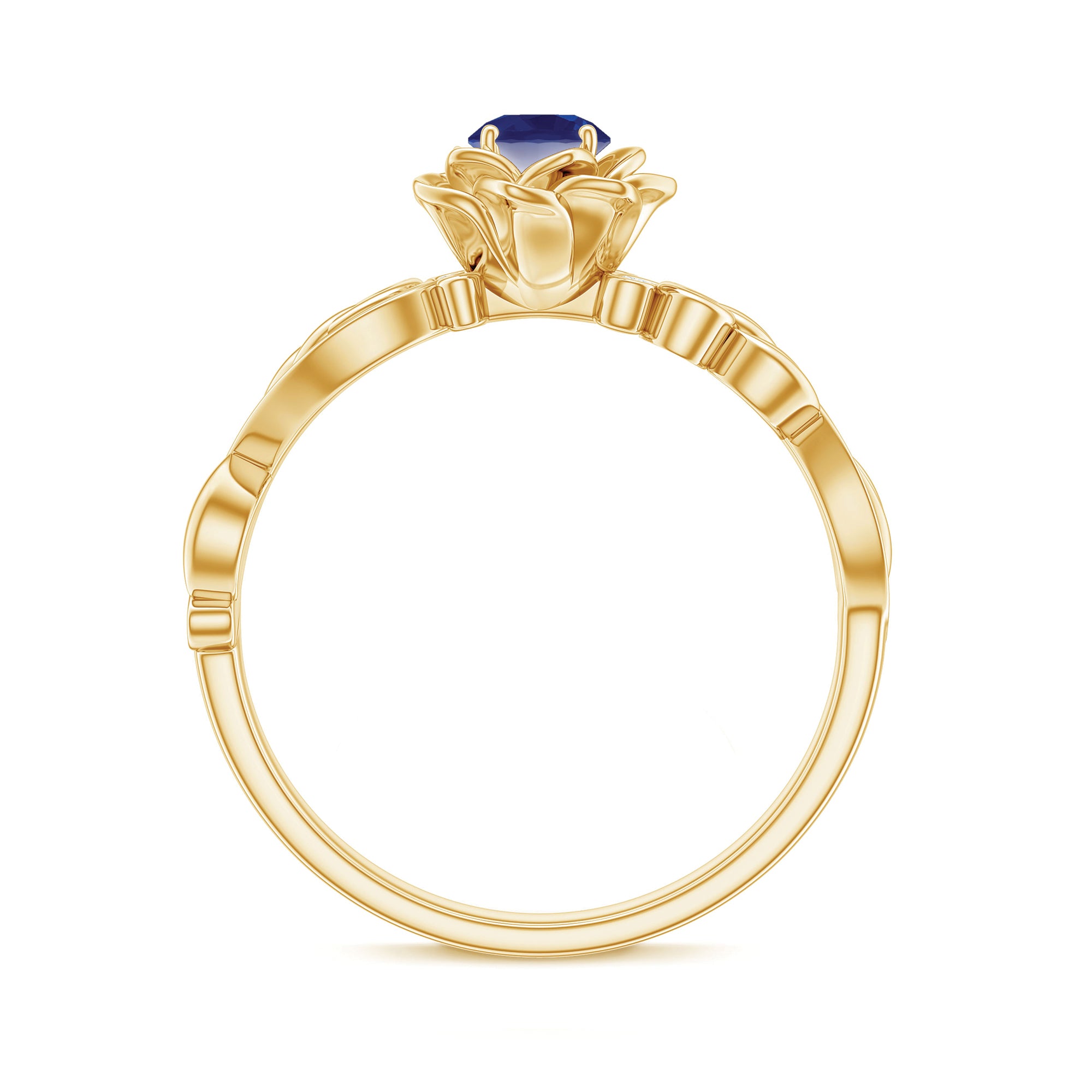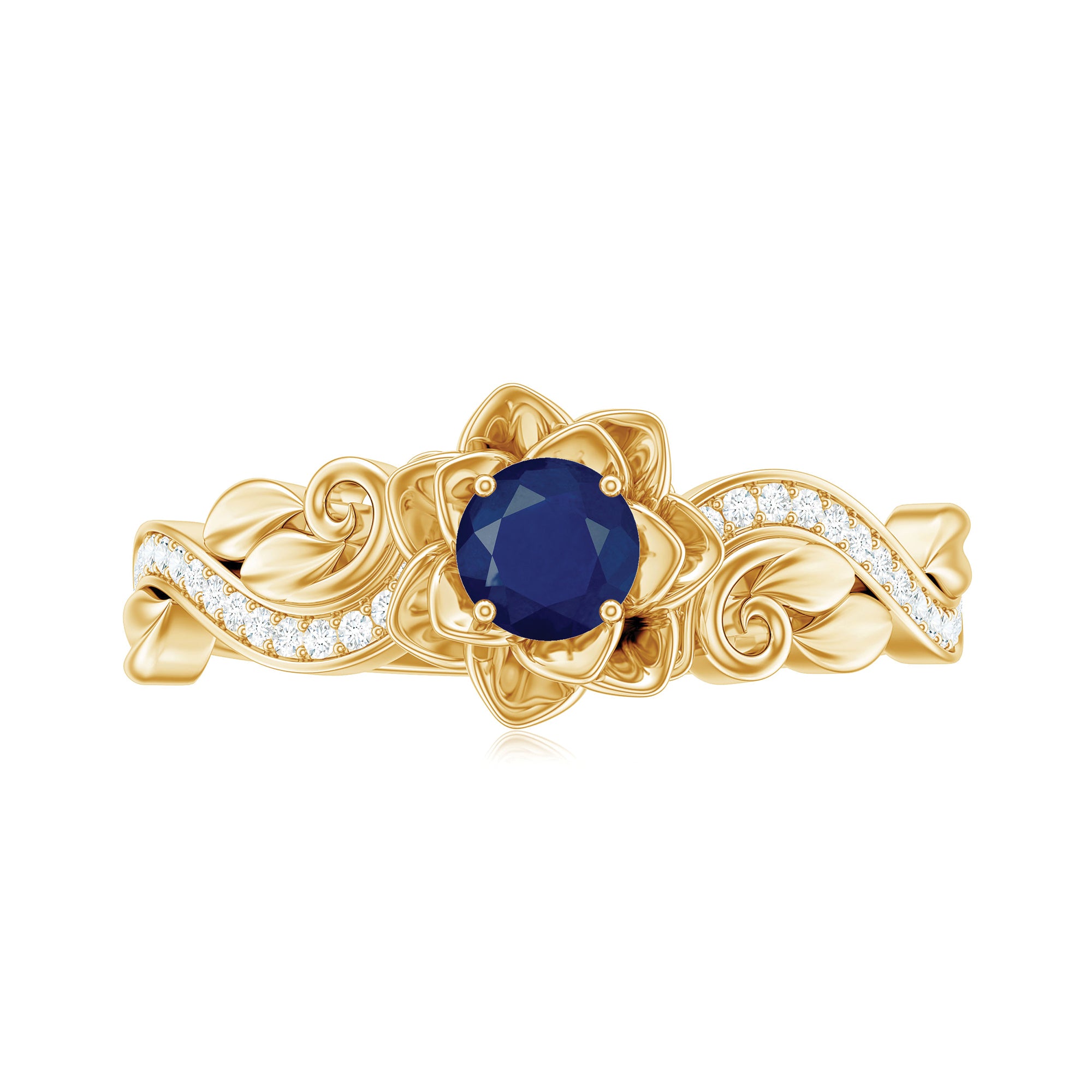 Add a touch of sophistication to your style with this stunning Floral Blue Sapphire Ring. The ring features a Round Shape Blue Sapphire in a prong setting surrounded by sparkling Diamond accents, all set on a solid gold band for a luxurious appeal.