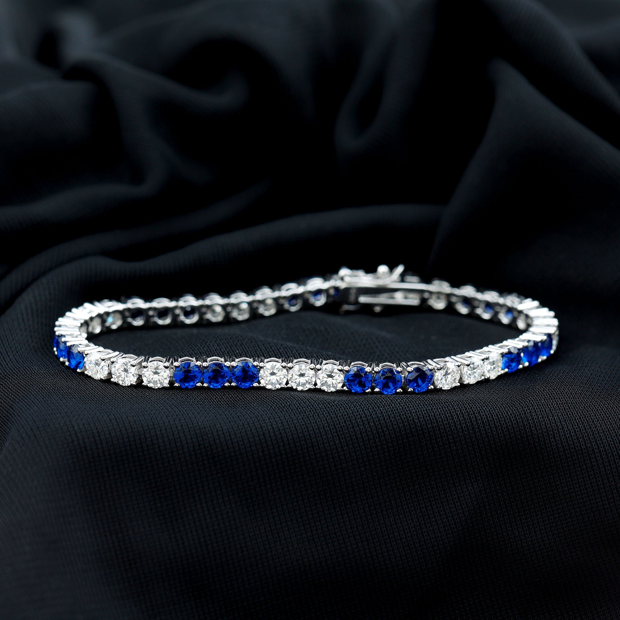 Prong Set Lab Grown Diamond Sapphire Eternity Tennis Bracelet