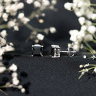 Prong Set Princess Cut Solitaire Created Black Diamond Stud Earrings