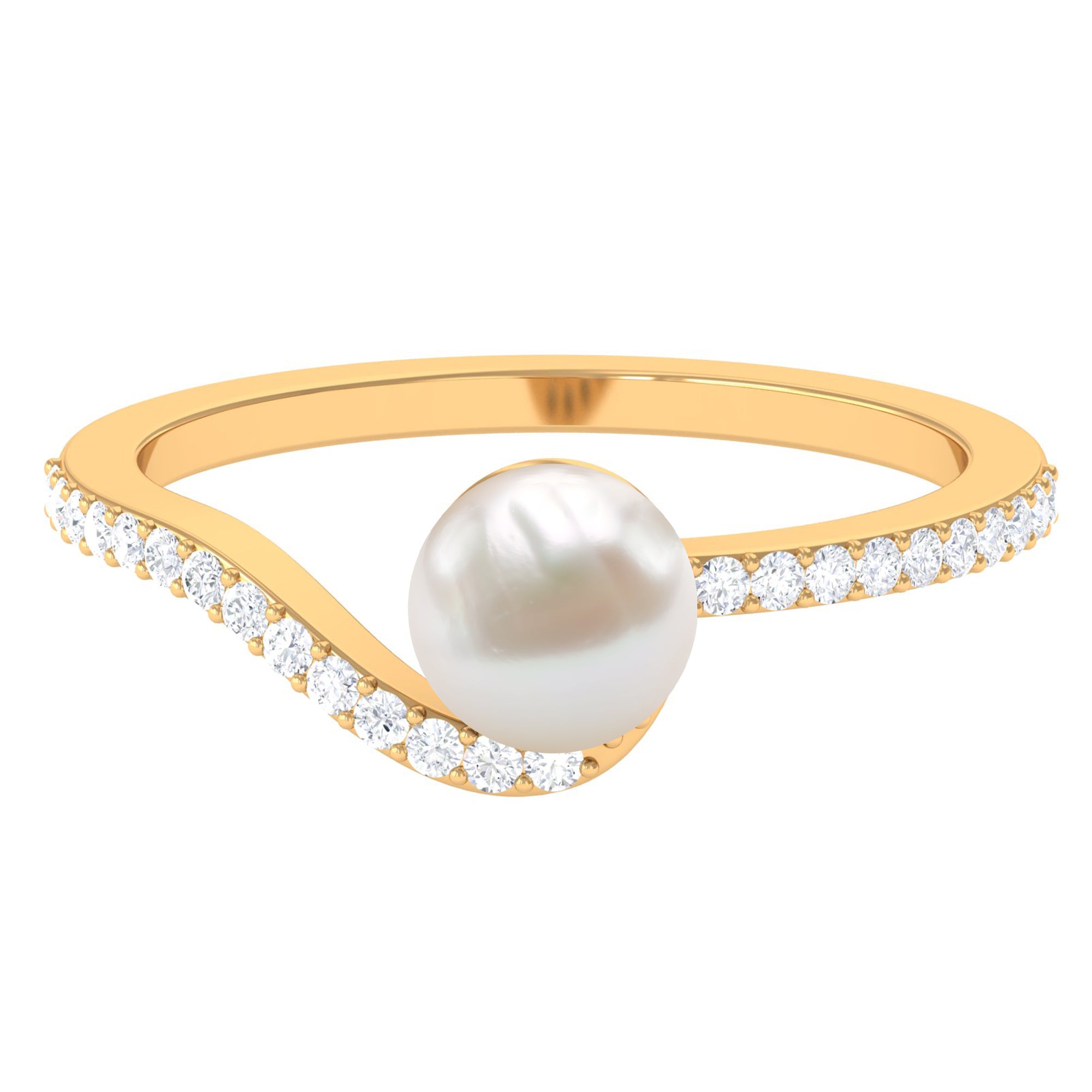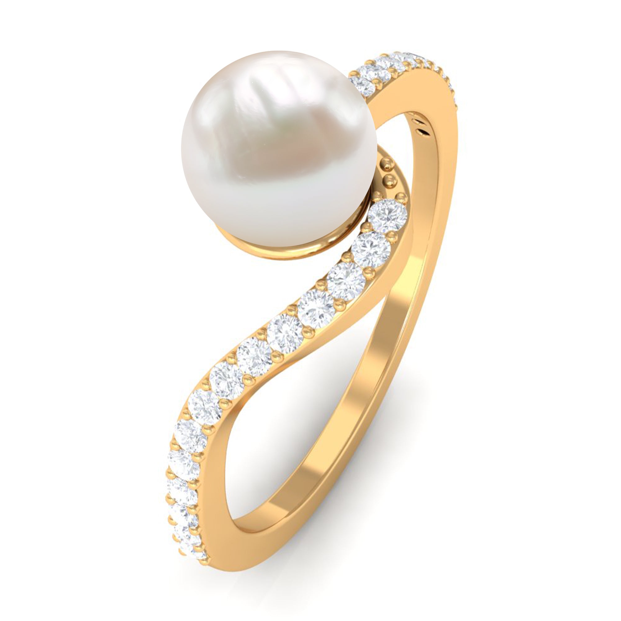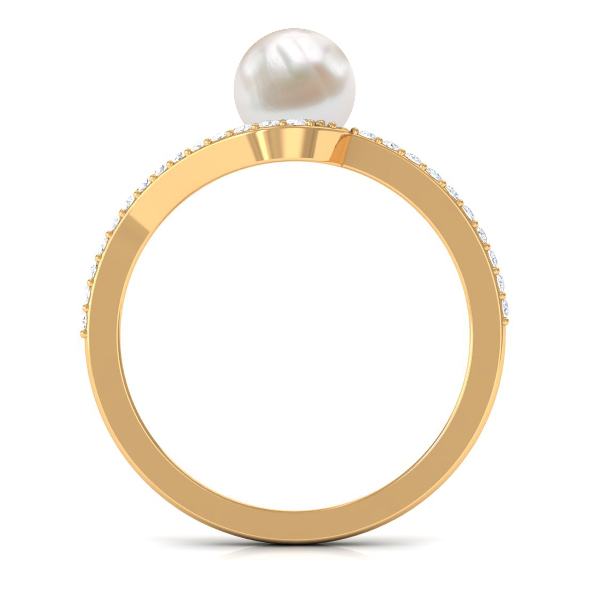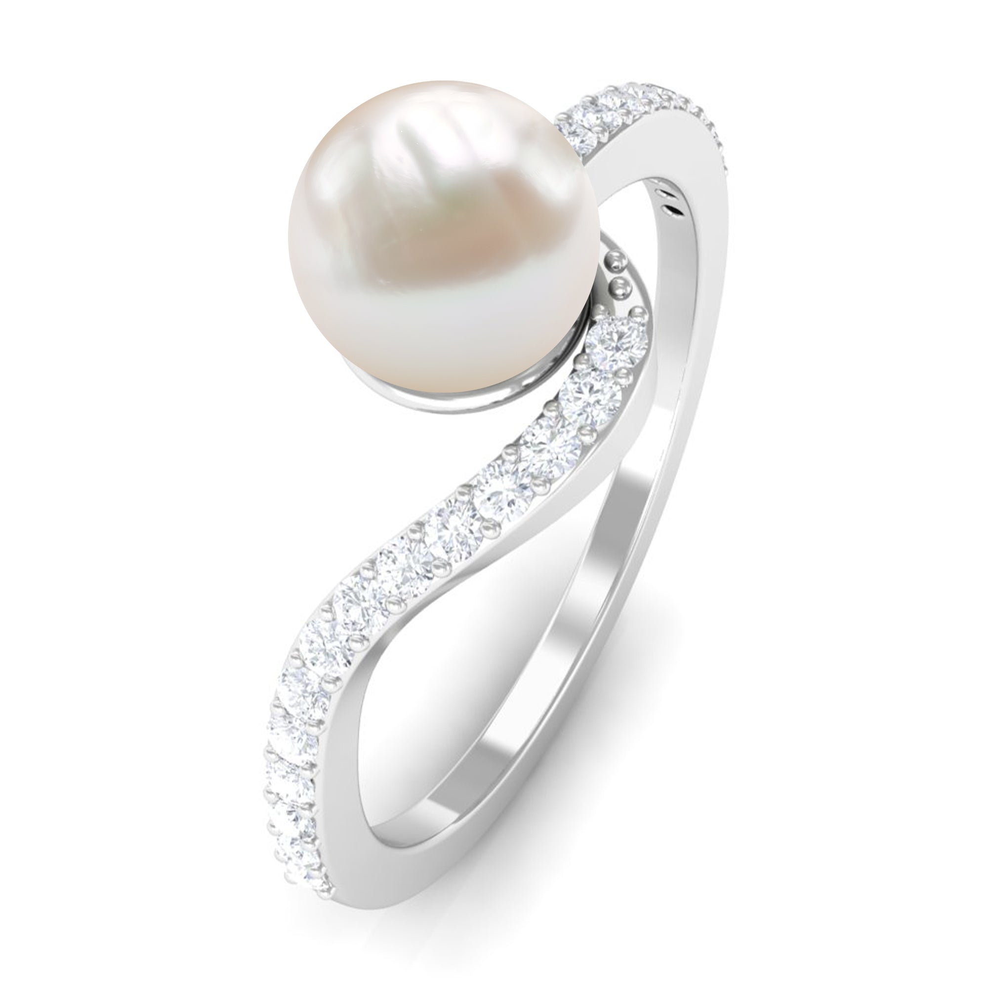 Pure Freshwater Pearl Minimal Bypass Engagement Ring with Diamond