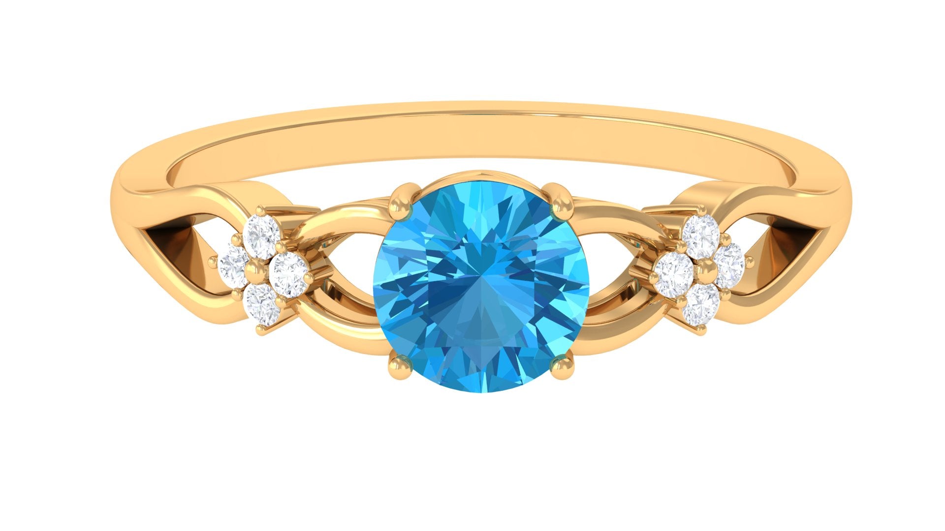 Grab this alluring Swiss Blue Topaz Floral Ring embellished with Round Shape Swiss Blue Topaz secured by 4 Prong Setting while dainty Round Diamond studded on the shank. This amazing Swiss Blue Topaz Ring is an excellent choice for your special one to present as a Birthday Gift or an Anniversary Gift.