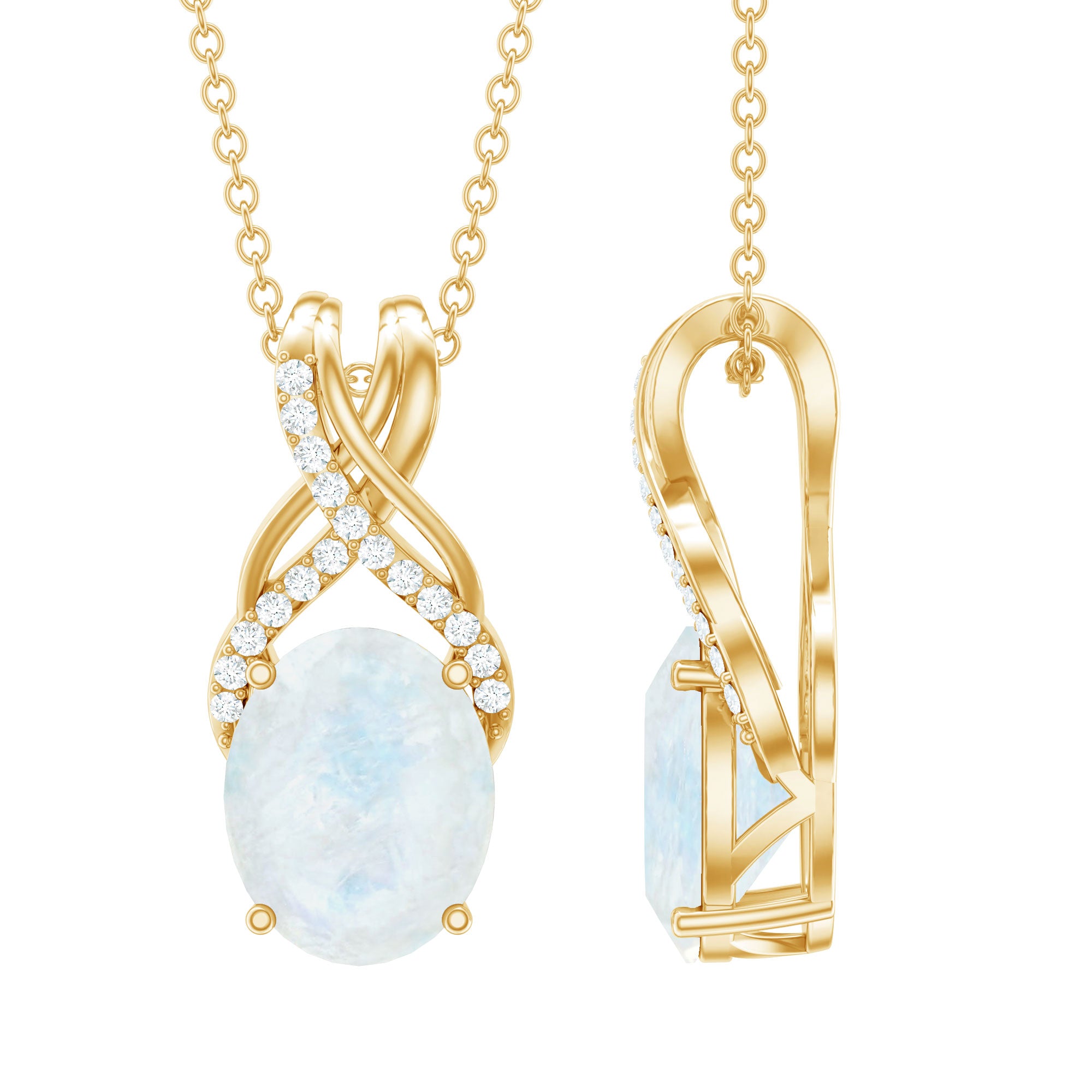 Real 0.6 Carat Oval Shape Moonstone Necklace with Diamond Twisted Bail