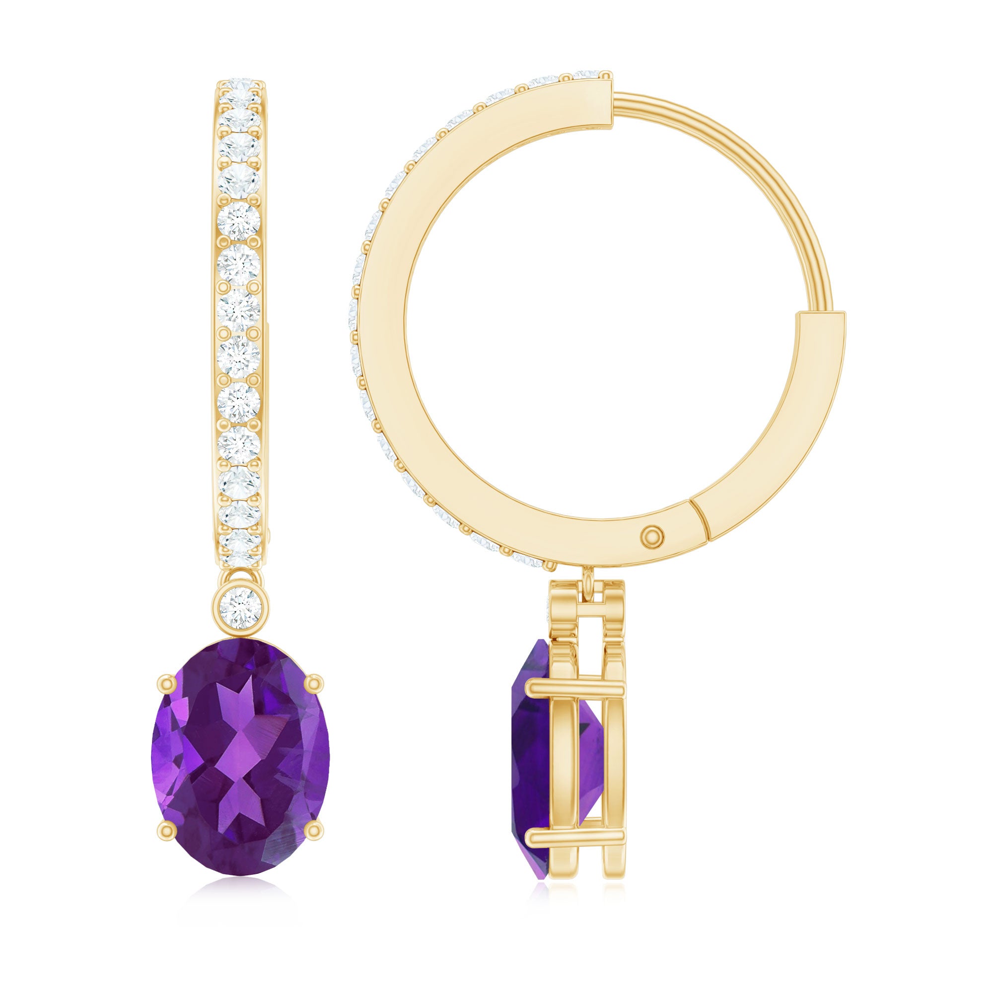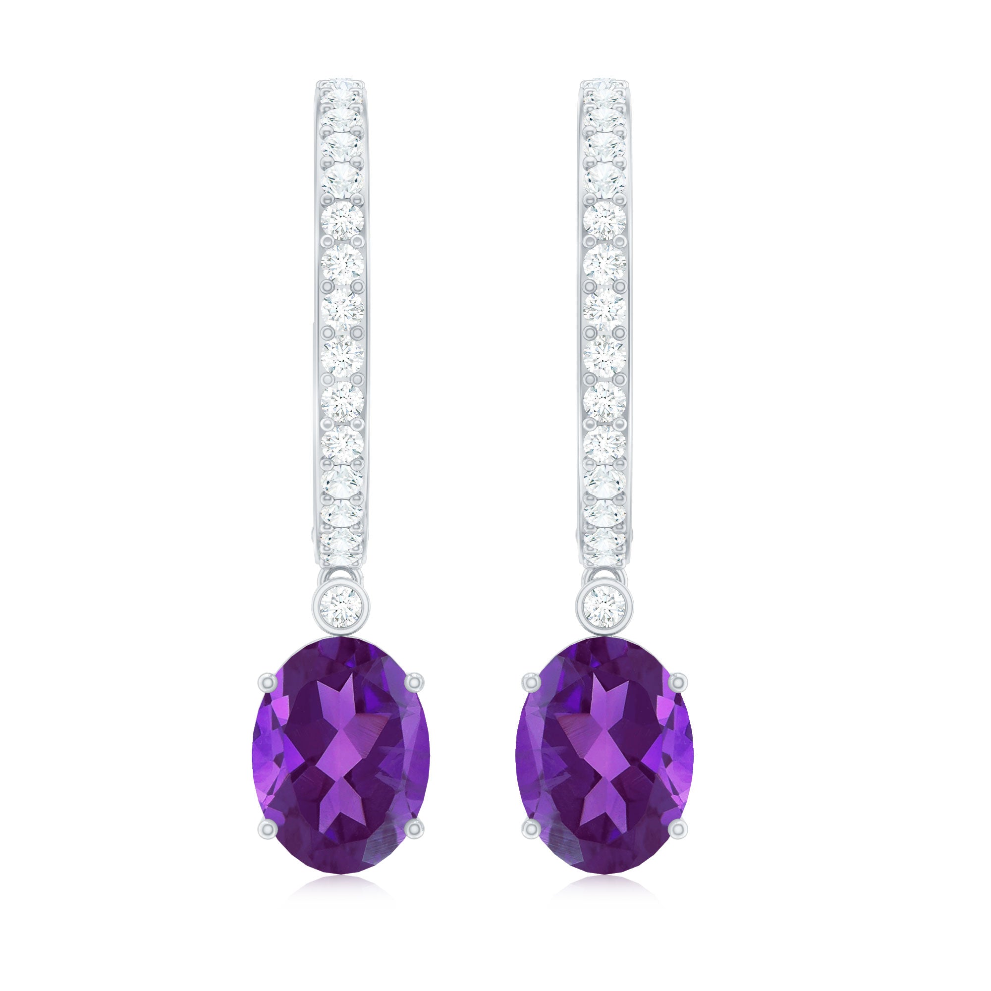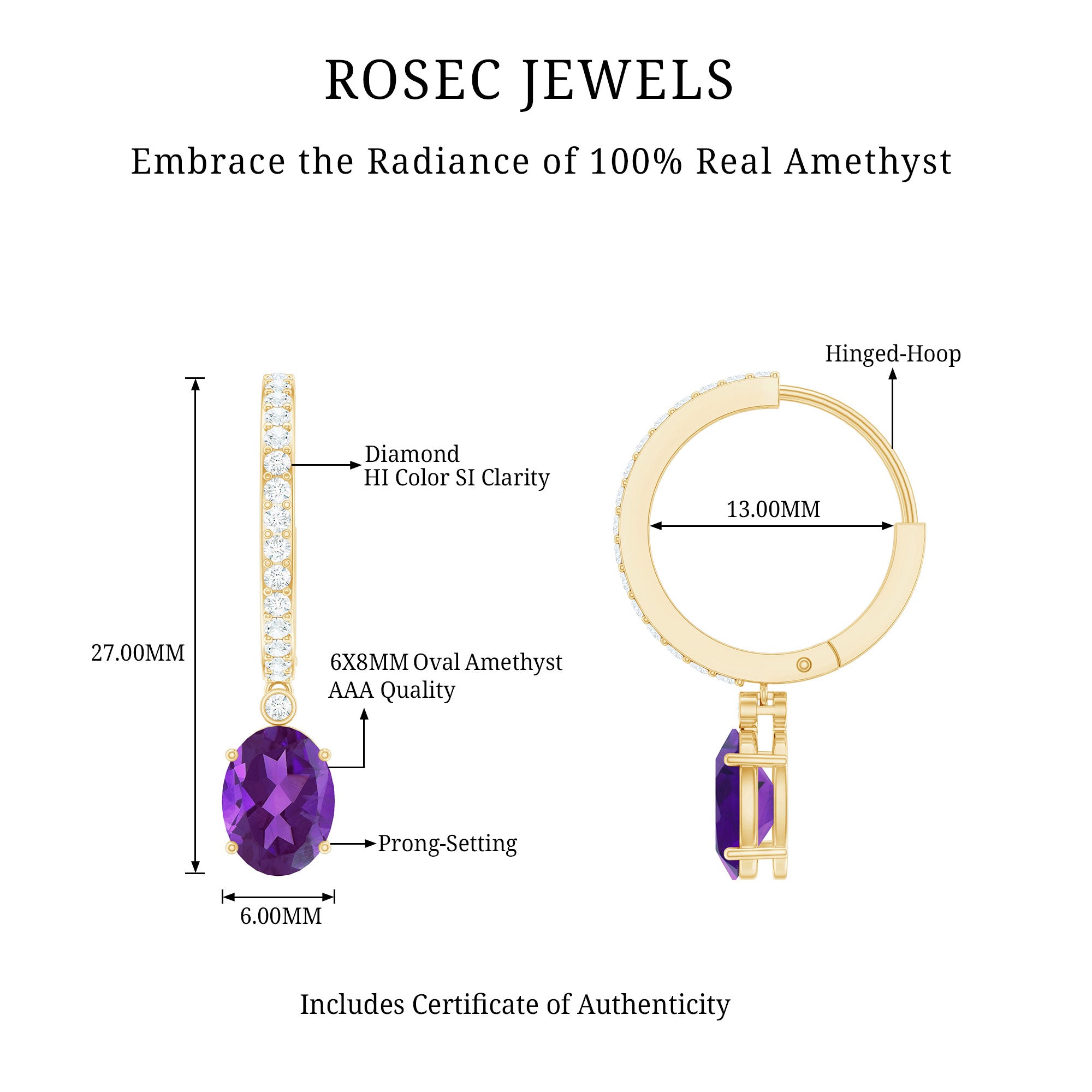 Real 6X8mm Oval Amethyst Diamond Hoop Earrings With Diamonds