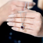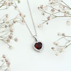Add a touch of romance to your style with this stunning Heart Shaped Garnet Necklace, which represents love and affection. Made from White Gold Plated Silver, this pendant features an heart shaped 8 MM natural garnet set in prong setting, surrounded by a Moissanite halo. Make a statement with this beautiful Heart Pendant Necklace, embodying love, enthusiasm, and strength. It comes with a free cable chain, offering a flexible length that works well with different necklines and personal styles. Inspired by the Titanic Heart Necklace, it enhances your outfit elegantly and serves as a perfect gift for someone special to you. This Love Heart Necklace showcases AAA Quality Garnet and D-VS1 Quality Moissanite that exude warmth and passion, making it an ideal symbol of love. With its ethereal charm, it perfectly balances elegance and subtle luxury. Perfect for occasions like Valentines Day, Weddings, Anniversaries, Birthdays, Mothers Day, or any special event, this Heart Locket Necklace conveys deep emotions without needing words - it is not just jewelry, it is a heartfelt expression.