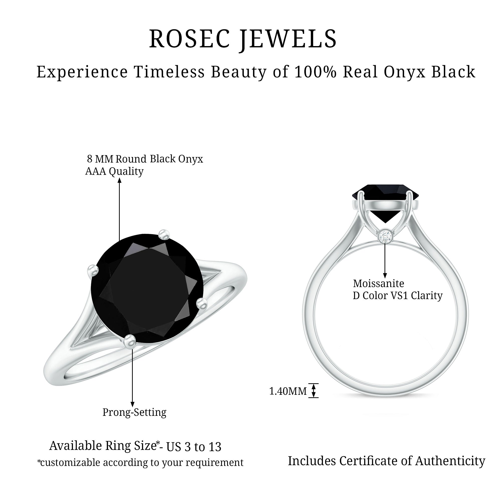 Real 8mm Black Onyx Solitaire Ring with Hidden Moissanite