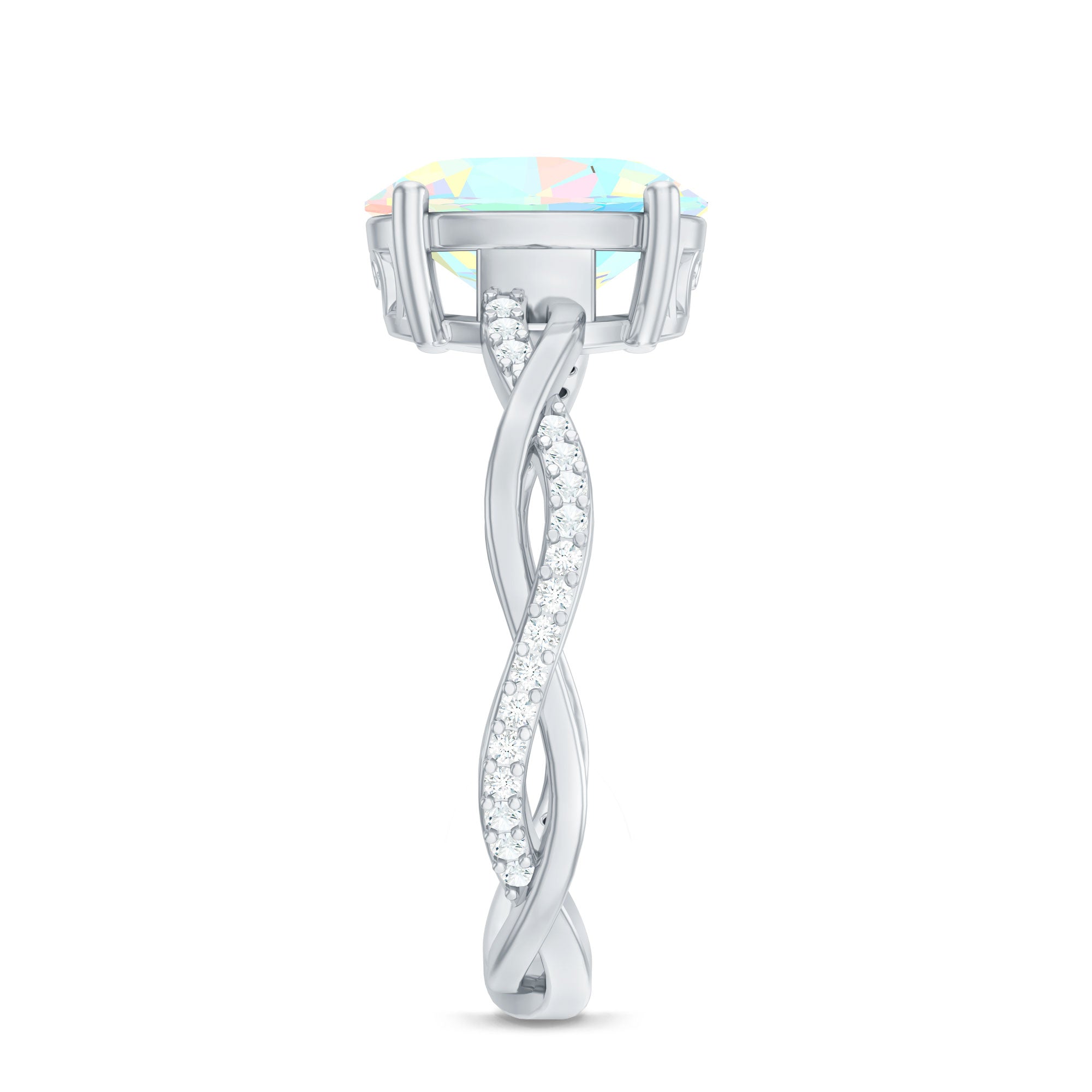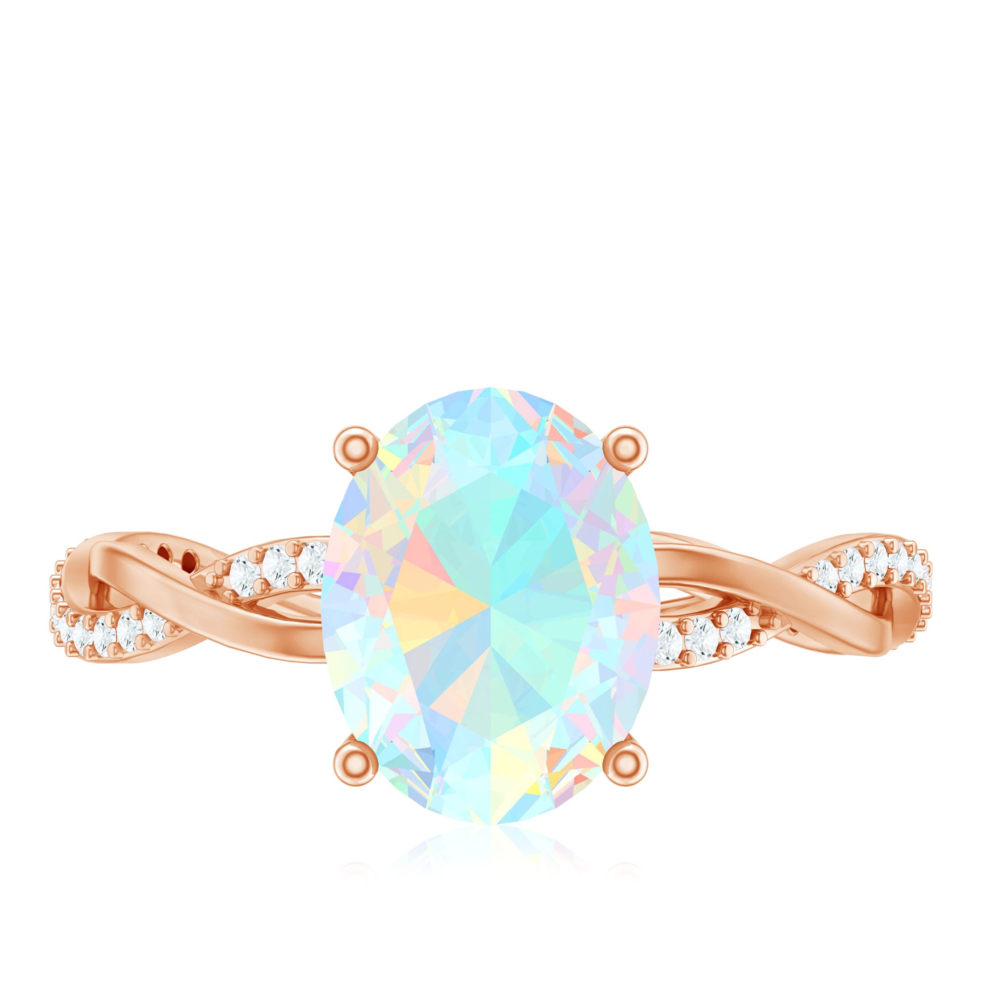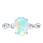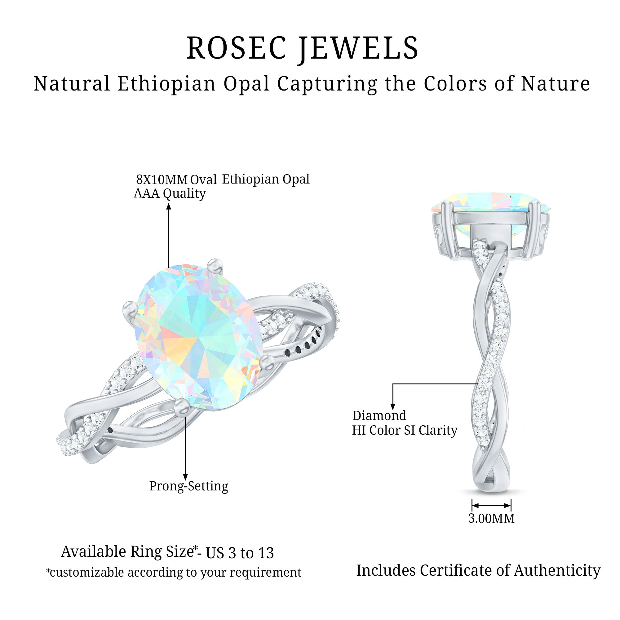 Real 8X10mm Ethiopian Rainbow Opal Engagement Ring with Diamond Braided Shank